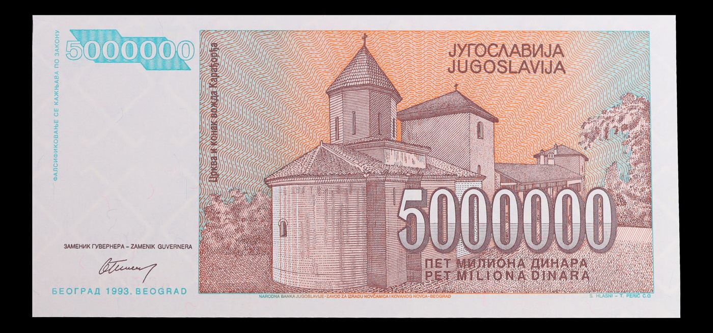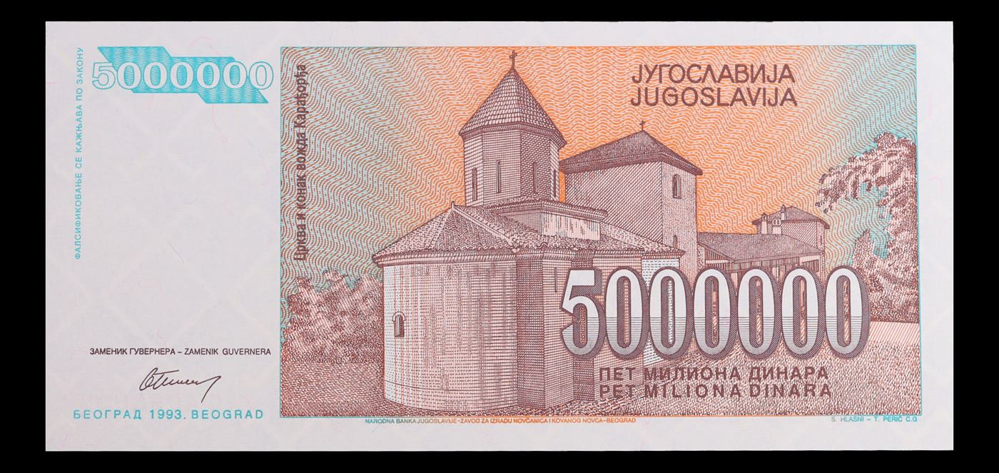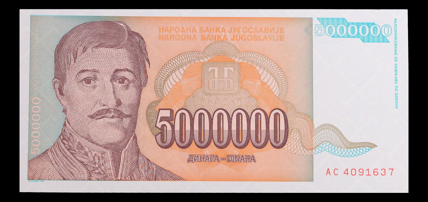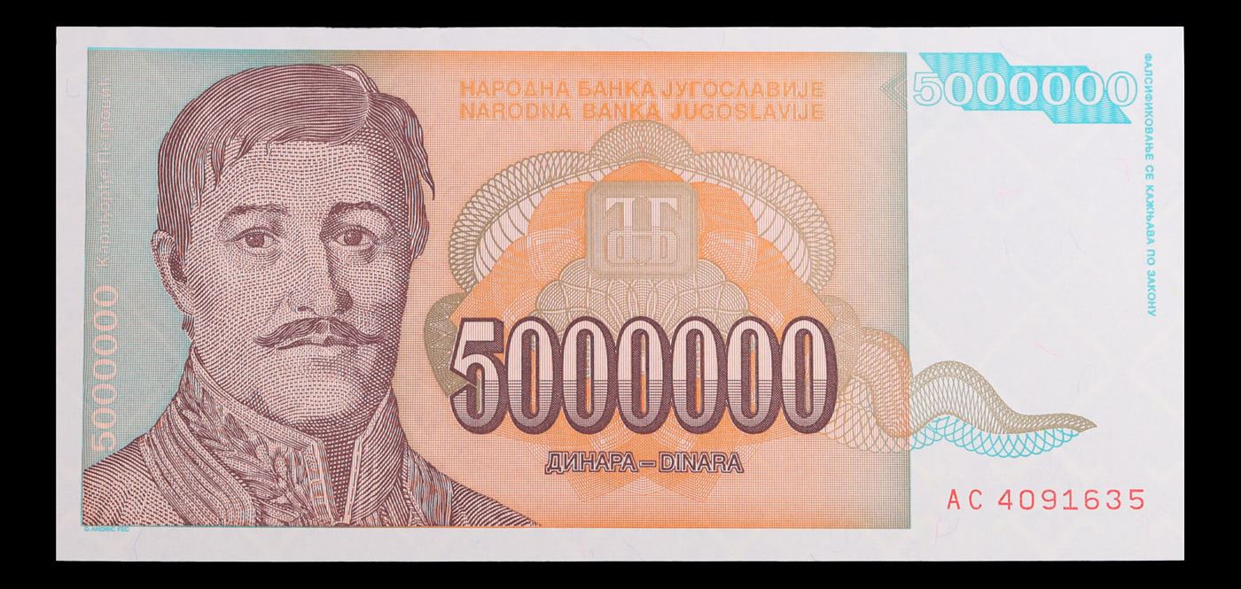 set of 3 consecutive 1993 Yugoslavia 5,000,000 Dinara Note P# 132 Grades CU