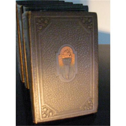 These wonderful antique 6.5 by 4.5 by 2 inch series of 6 books volume 1,2,3,5,7 and 8 BEACON LIGHTS OF HISTORY are magnificent and decorative as well as historical. The covers are highly detailed, gold embossed with image of a torch on each cover. The Author John Lord LL.D, is also Author of "The Old Roman World", "Modern Europe" Etc. Etc. On the Volume 1, on the third page, he dedicates this book to the Memory of his wife. Indicates To the Memory of Mary Porter Lord, Whose Friendship and Appreciation As a Devoted Wife Encouraged me to a Long Life of Historical Labors, This Work is gratefully and affectionately dedicated by the Author. It has copy of the signature, and copy of photo of Mr. Lord and is published by Wise & Co in New York City, The United States of America.They are collectible and wonderful.