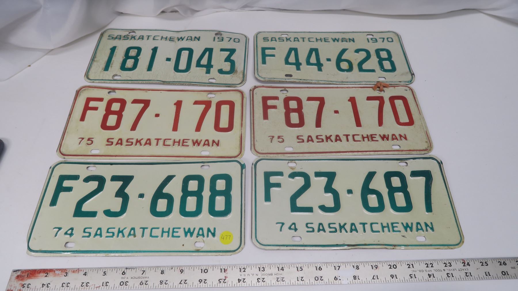 set of 6 vintage sask license plates from 1970 to 1975