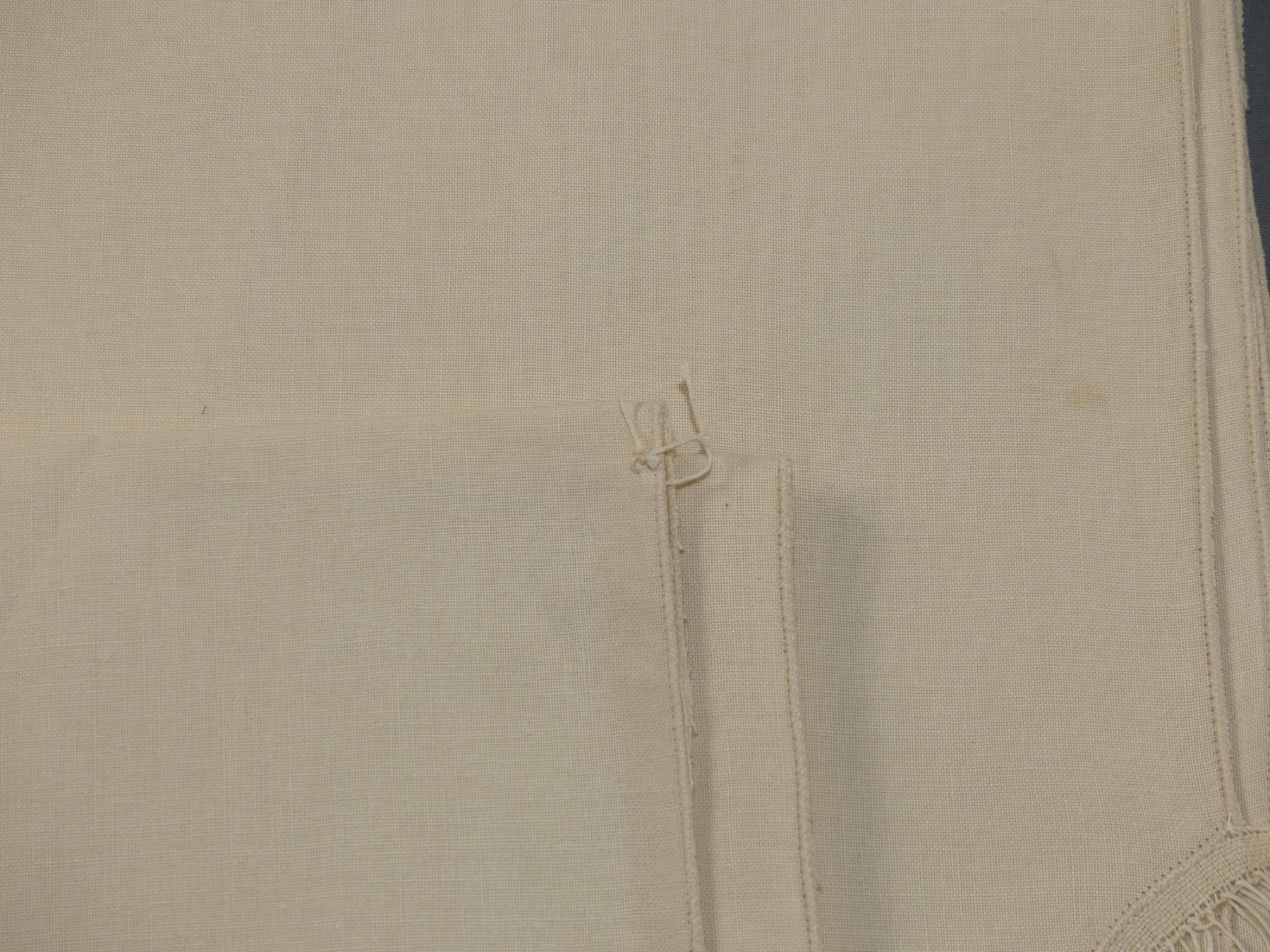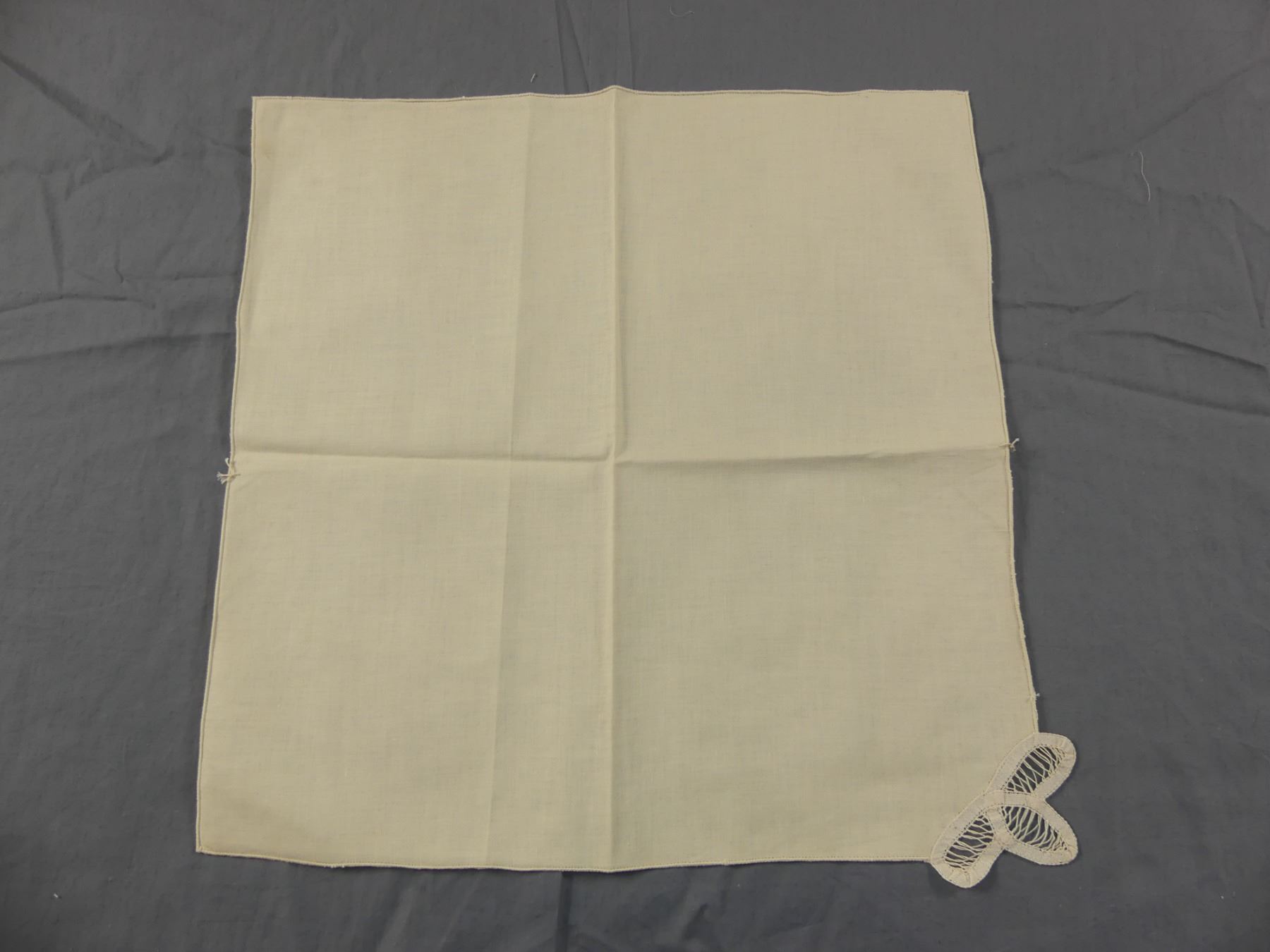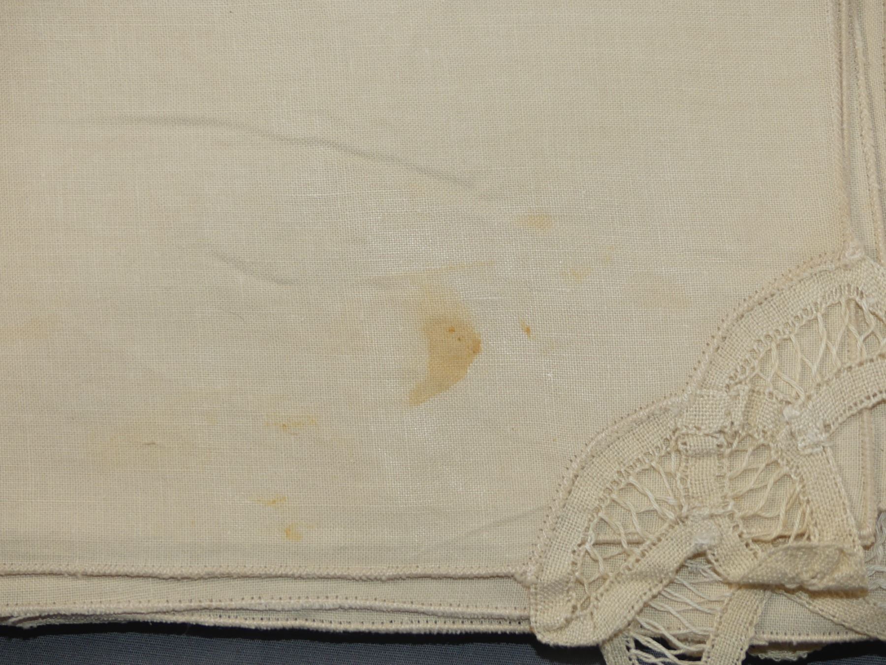 set of 7 Vintage Ecru Linen Tape Lace & Embroidered Placemat Set with