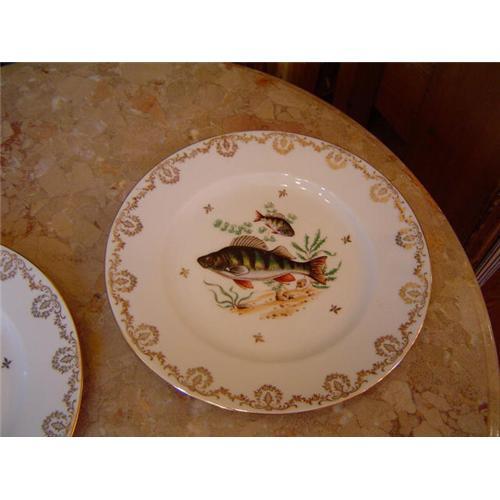 set of 12 gorgeous limoges fish plates , diferent decor , signed on the back . mint condition , ready to inhance your dinner table
