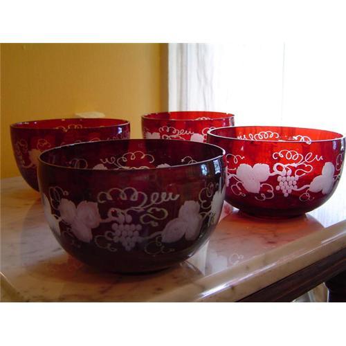 a gorgeous set of 4 bohemian cut to clear glass finger bowls circa 1860 , good condition . great buy .3 inches high 5 diameter.