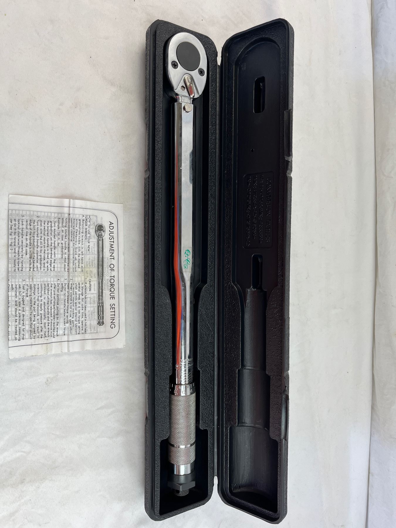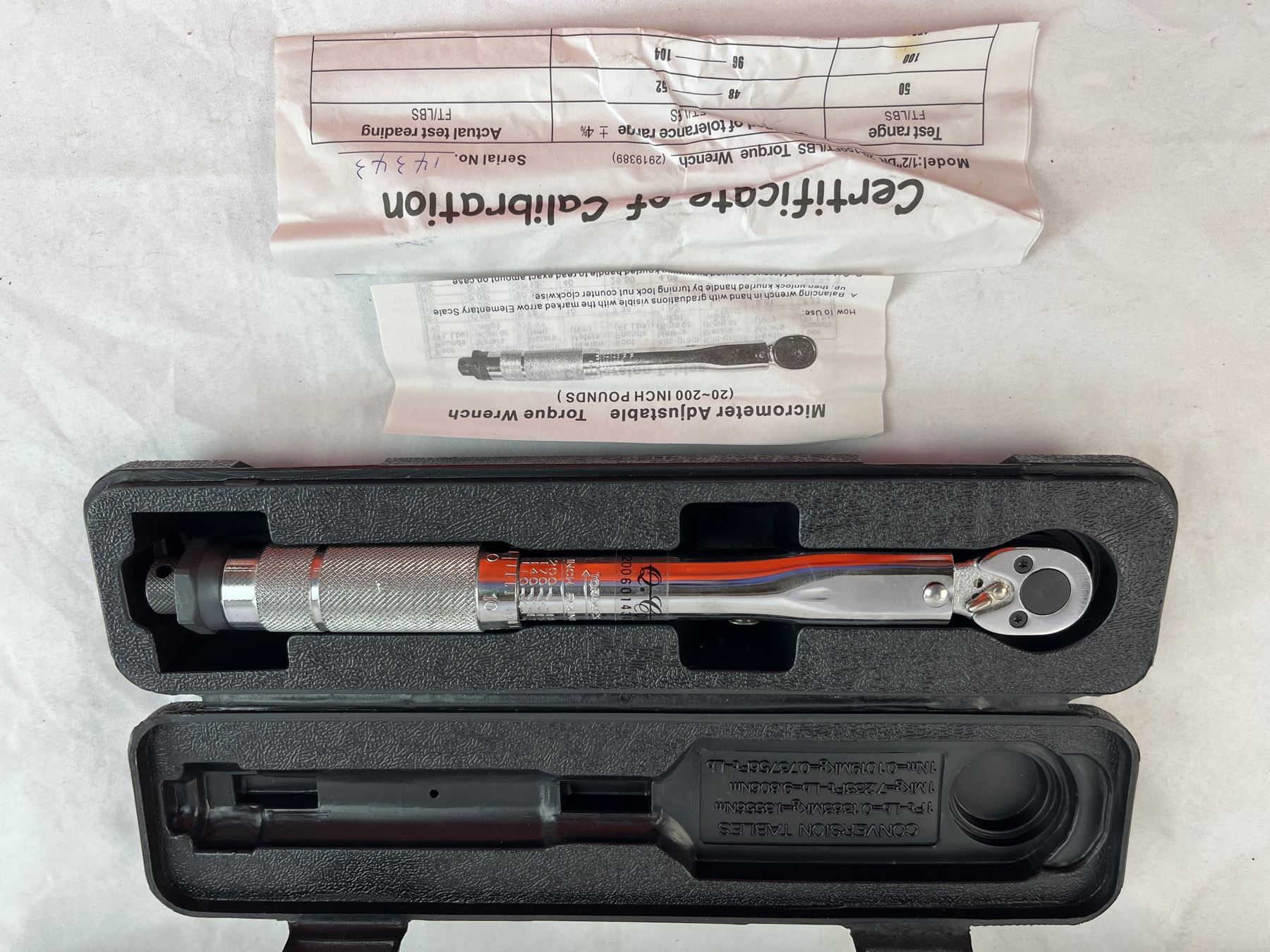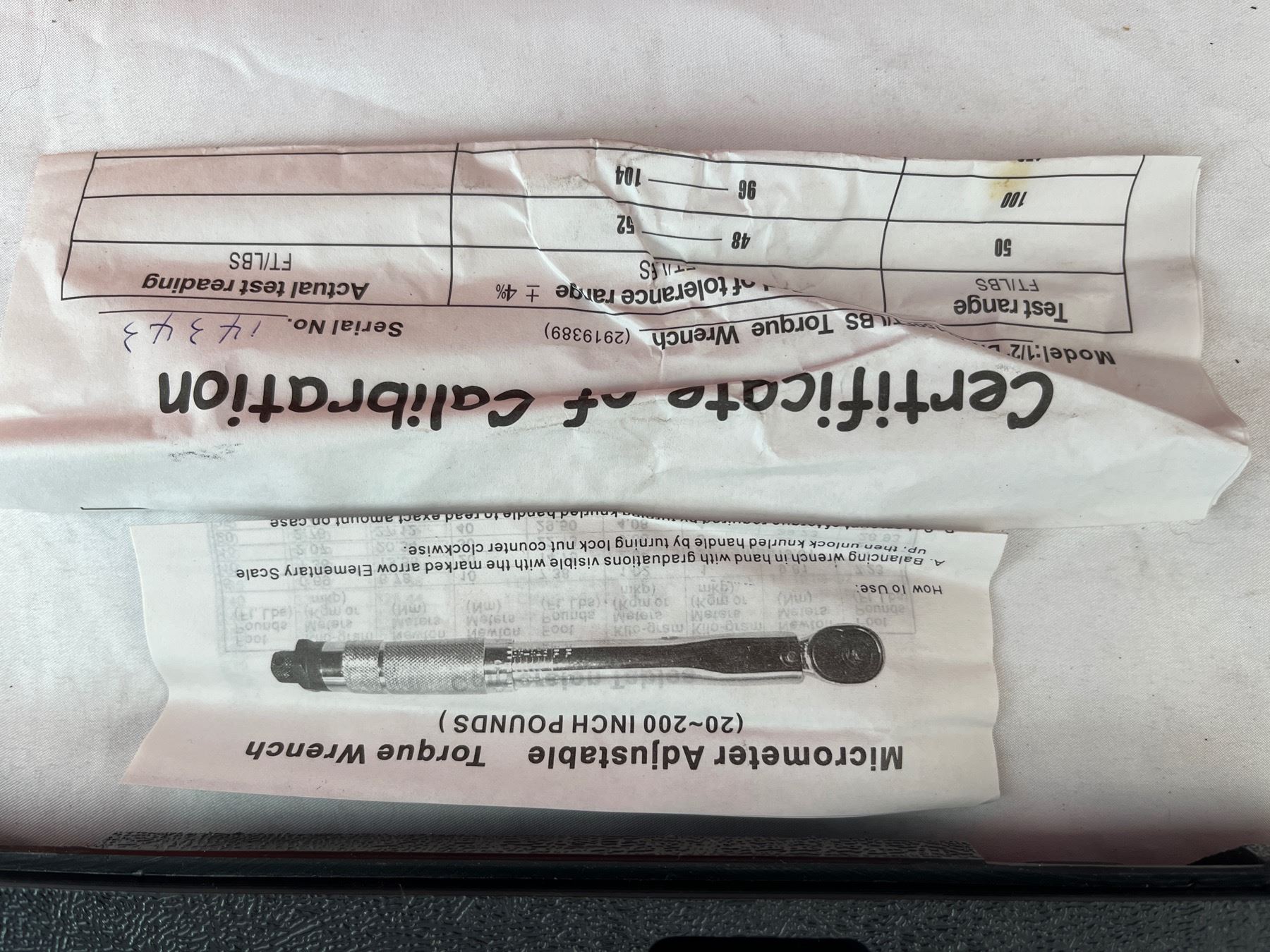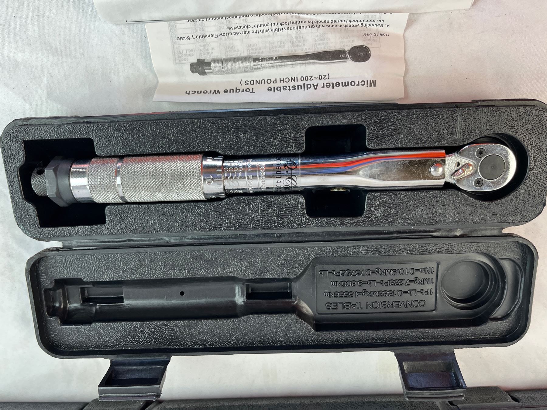 smaller micrometer adjustable torque wrench 20-200 inch pounds, and 10-150 FT-lbs 1/2" dual scale range wrench.