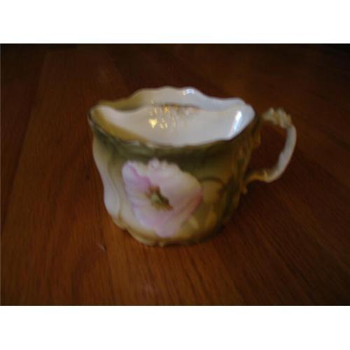 Stunning shaving mug from Germany. Gold trim highlights the unique floral design. It is signed on the bottom of this ever so stylish shaving mug...Germany. You can see in the pictures how the mu is divided into 2 sections as often the case for a Shaving mug. This is a very stylish shaving mug.