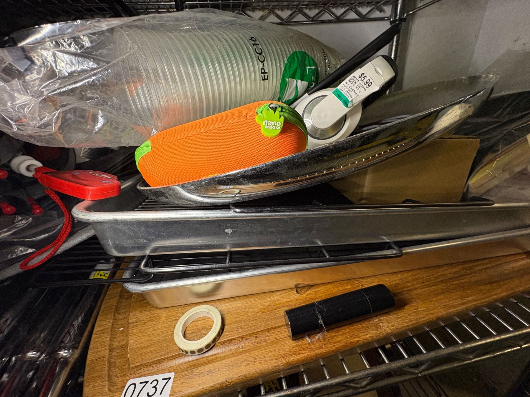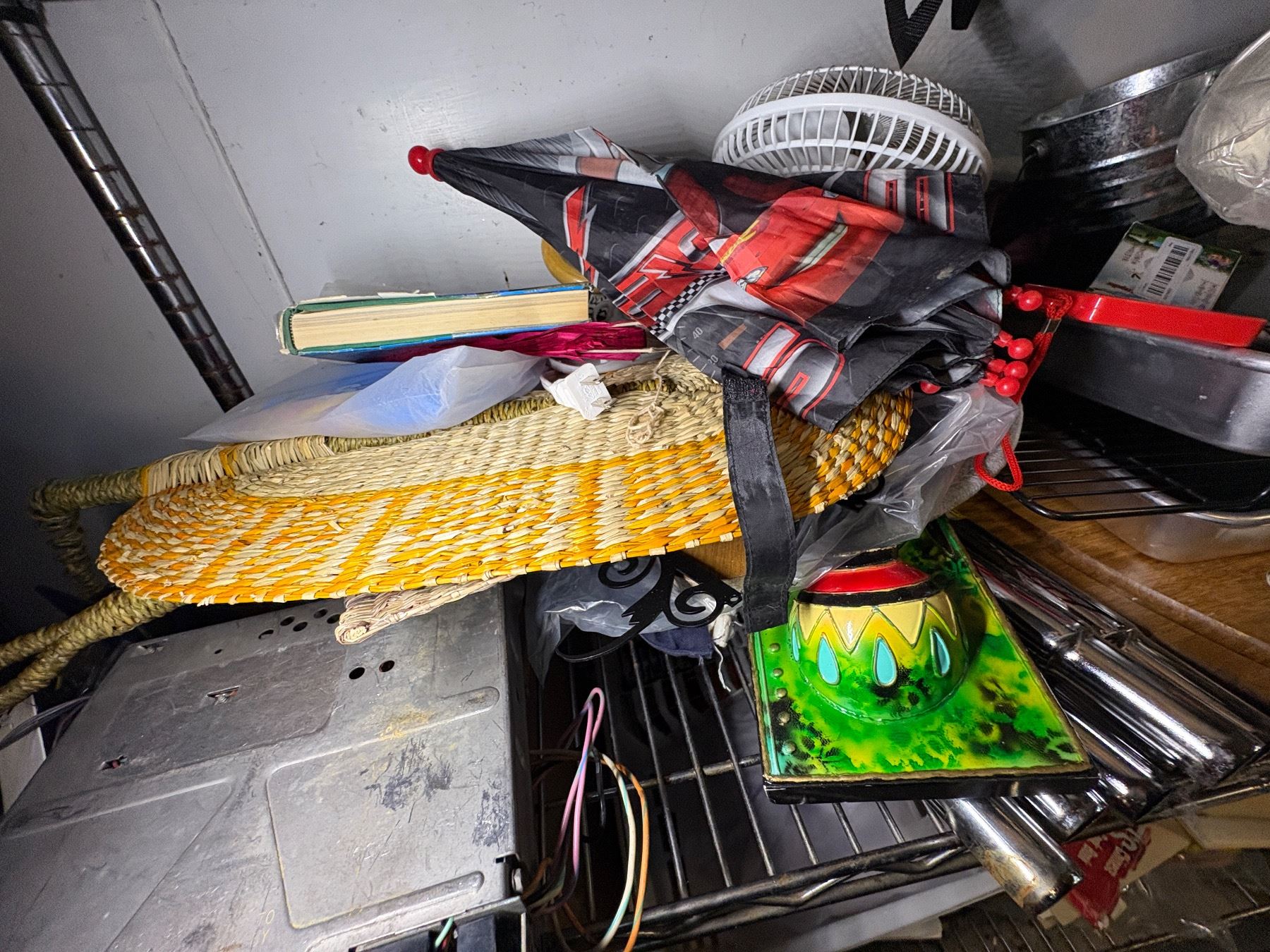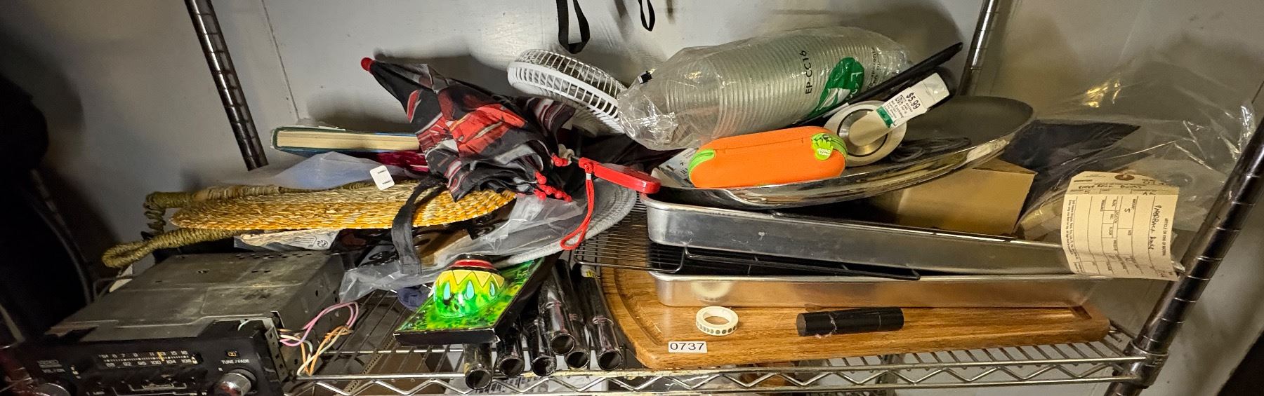shelf full of assorted items - includes kitchen ware/ electronics/decorative items, etc