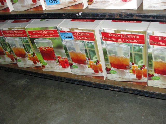shelf lot of 6 acrylic beverage dispensors
