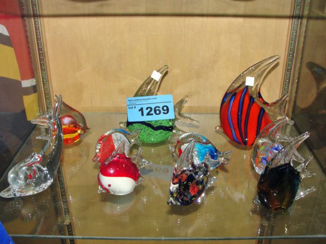 shelf lot of assorted fish figurines
