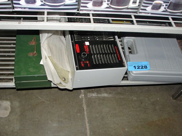 shelf lot of misc ;heater, toolbox etc