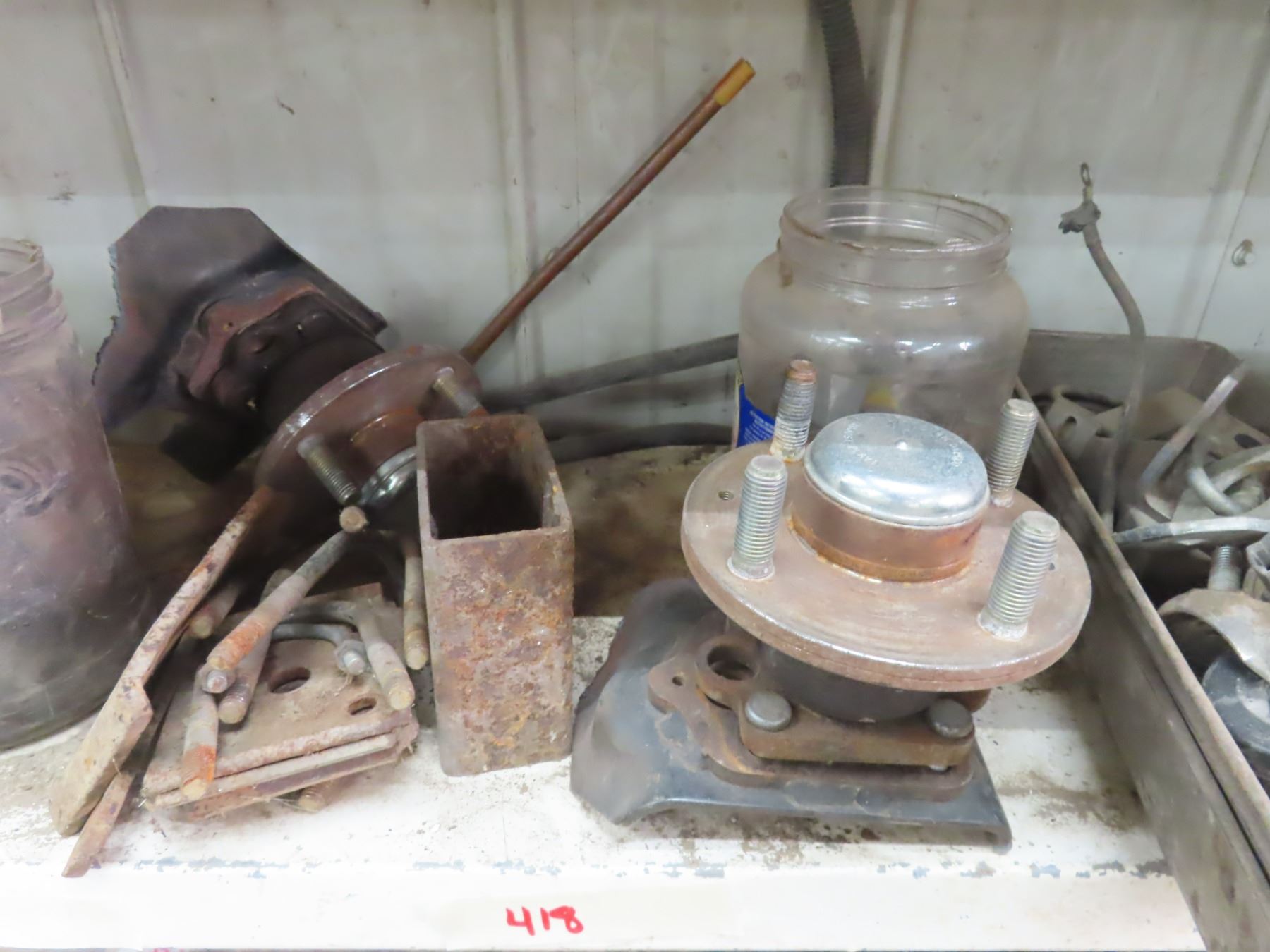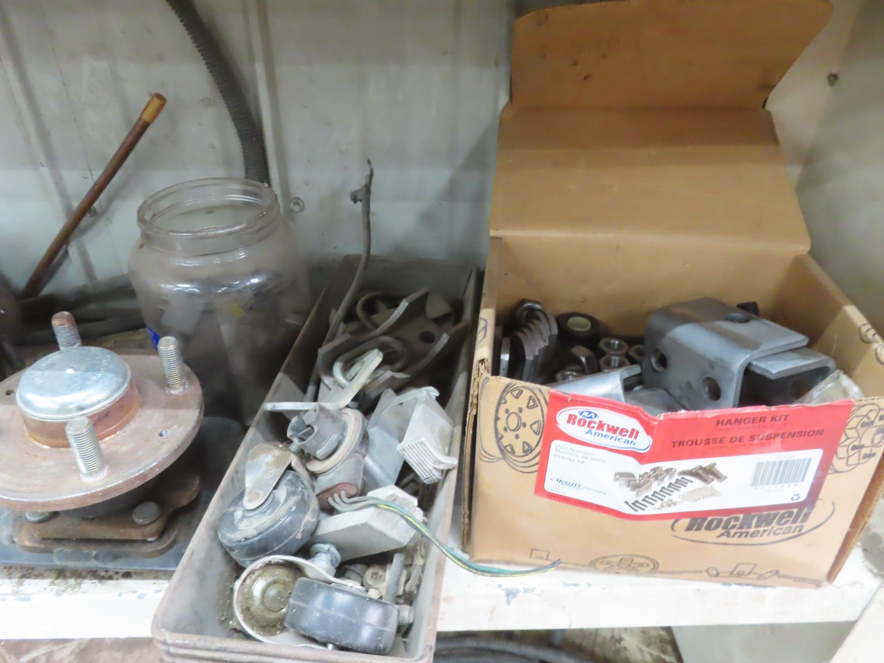 shelf of assorted automotive parts trailer parts