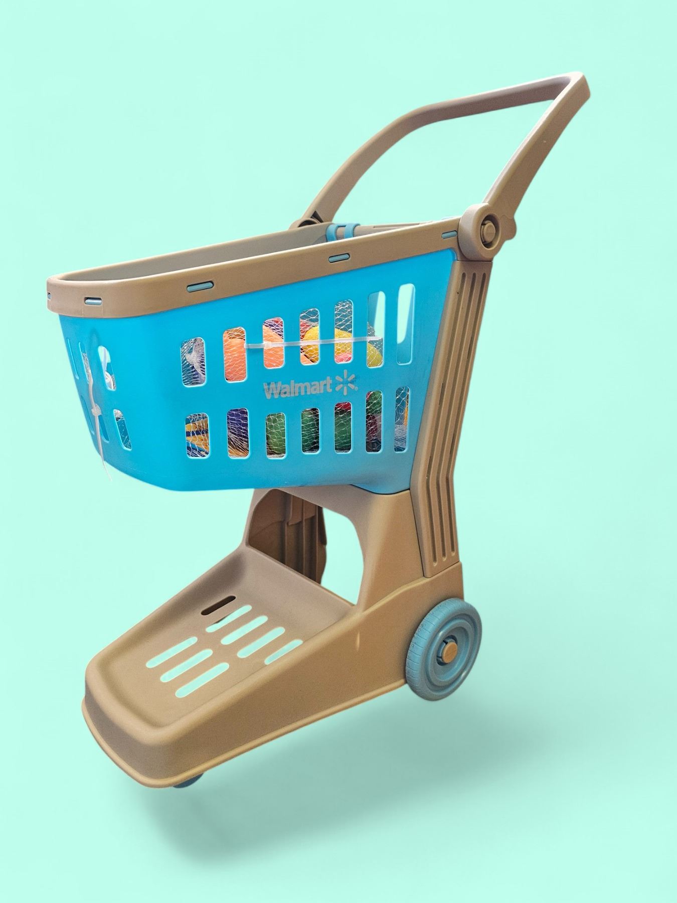 children's toy shopping trolley with play food items