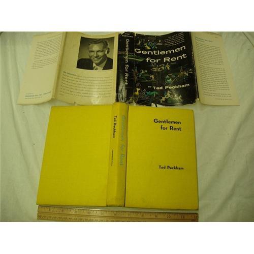 This book is author signed, first edition 1955. Gentlemen For Rent, by Ted Peckham. The inscription in the front reads, ? To Darling Adele, Who never let me down and always helped me.? Love Ted Peckham. Ted wrote this book about a international escort service of eligible young men, that he ran. It was published by Fredrick Fell, Inc., Publishers, New York. Al though the jacket is in poor condition, but the book itself is in good condition. The edges are worn a little bit. The book is hard cover, Yellow, with blue-gray lettering and black lettering. The pages are all tight and in good shape. There is a water stain on the jacket on the bottom binding of the book, which does show a little on the cover. This will make a fine collection even better.