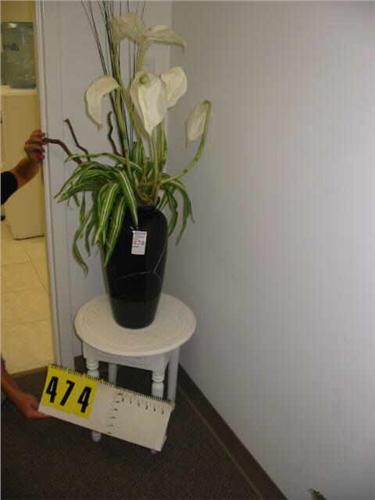 silk lillies in damaged vase with table