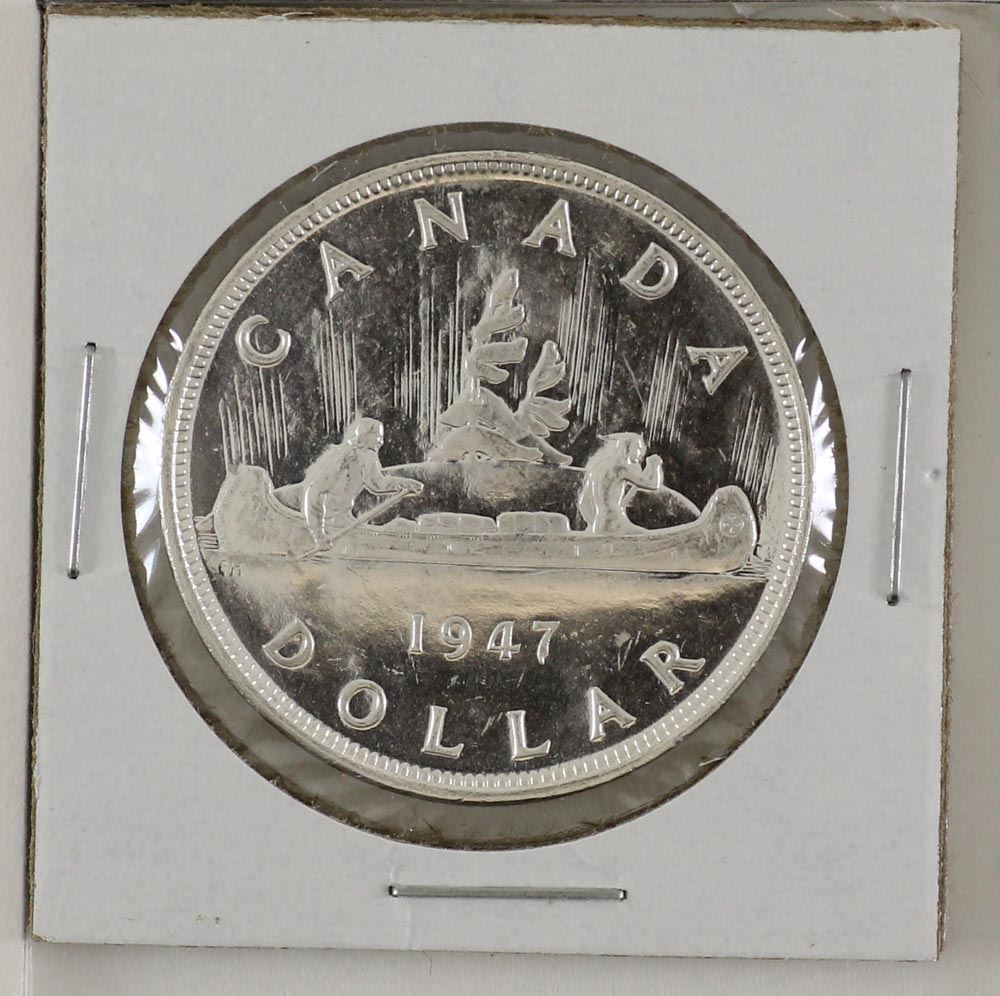silver $1 1947 Pointed 7, 2xHP; UNC to BU