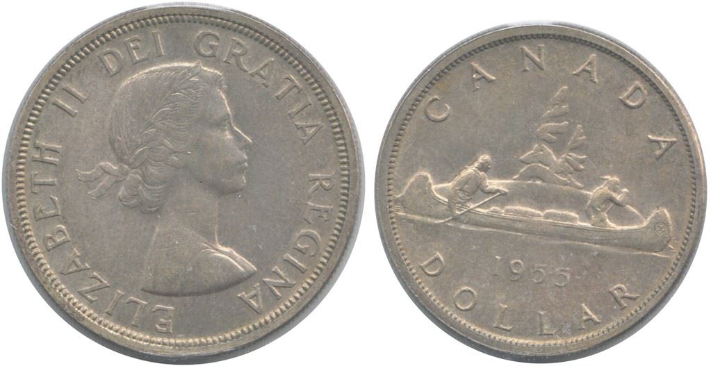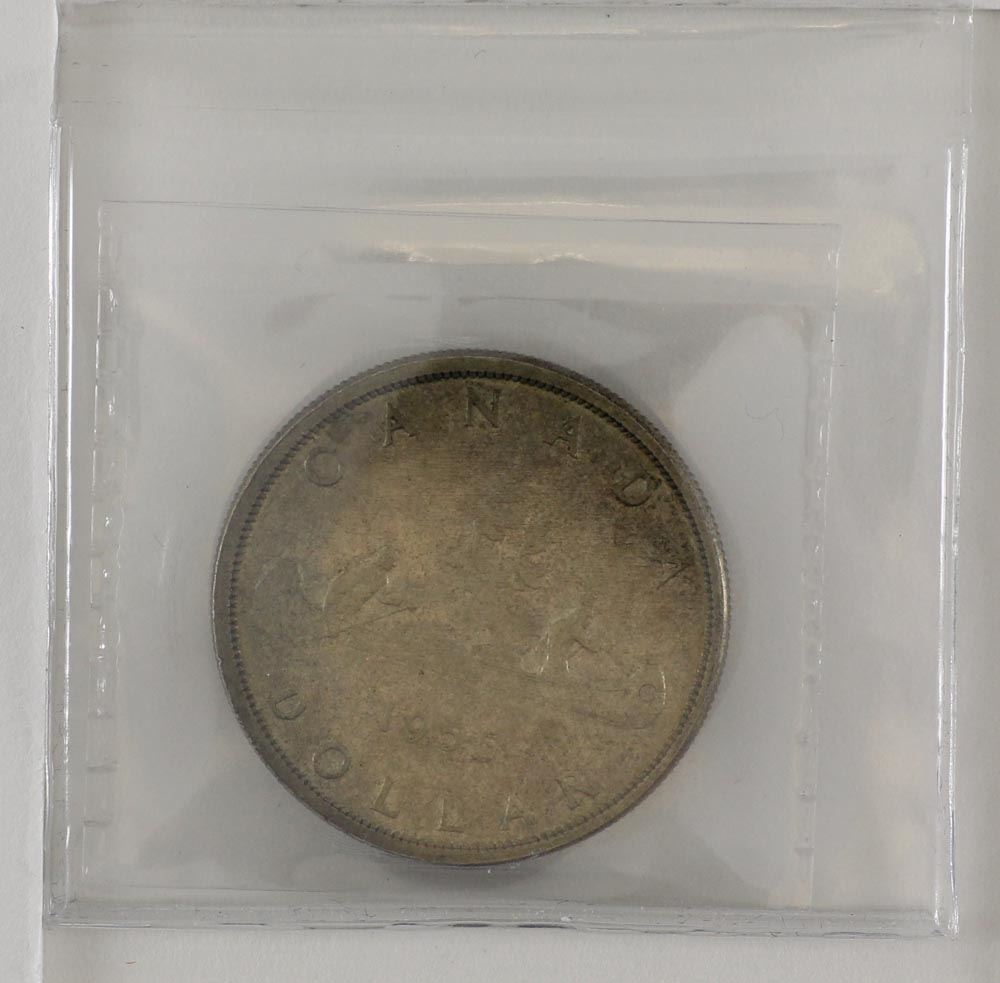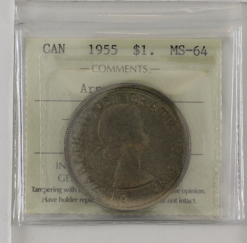 silver $1 1955 Arnprior ICCS MS64. With die break.