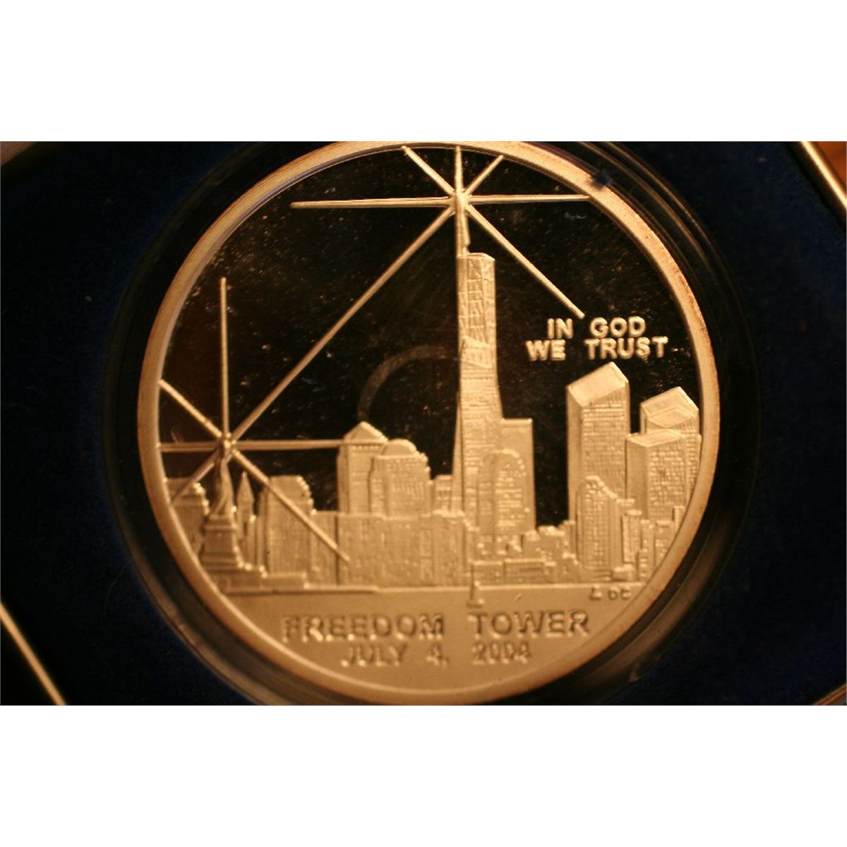 silver freeom tower coin in box