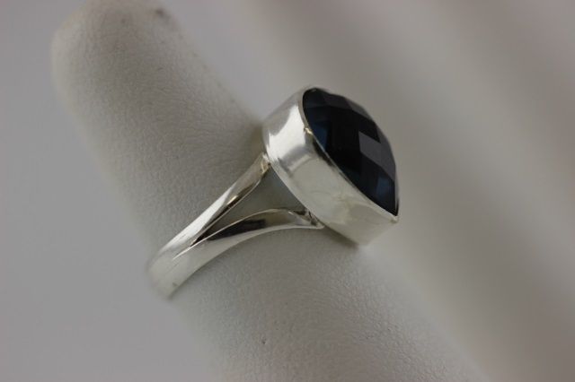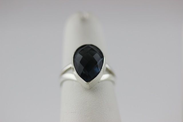 Size 6 1/2 ring with a large 14mm Pear Cut Faceted Iolite gemstone set in Sterling Silver. 3.2 grams total weight