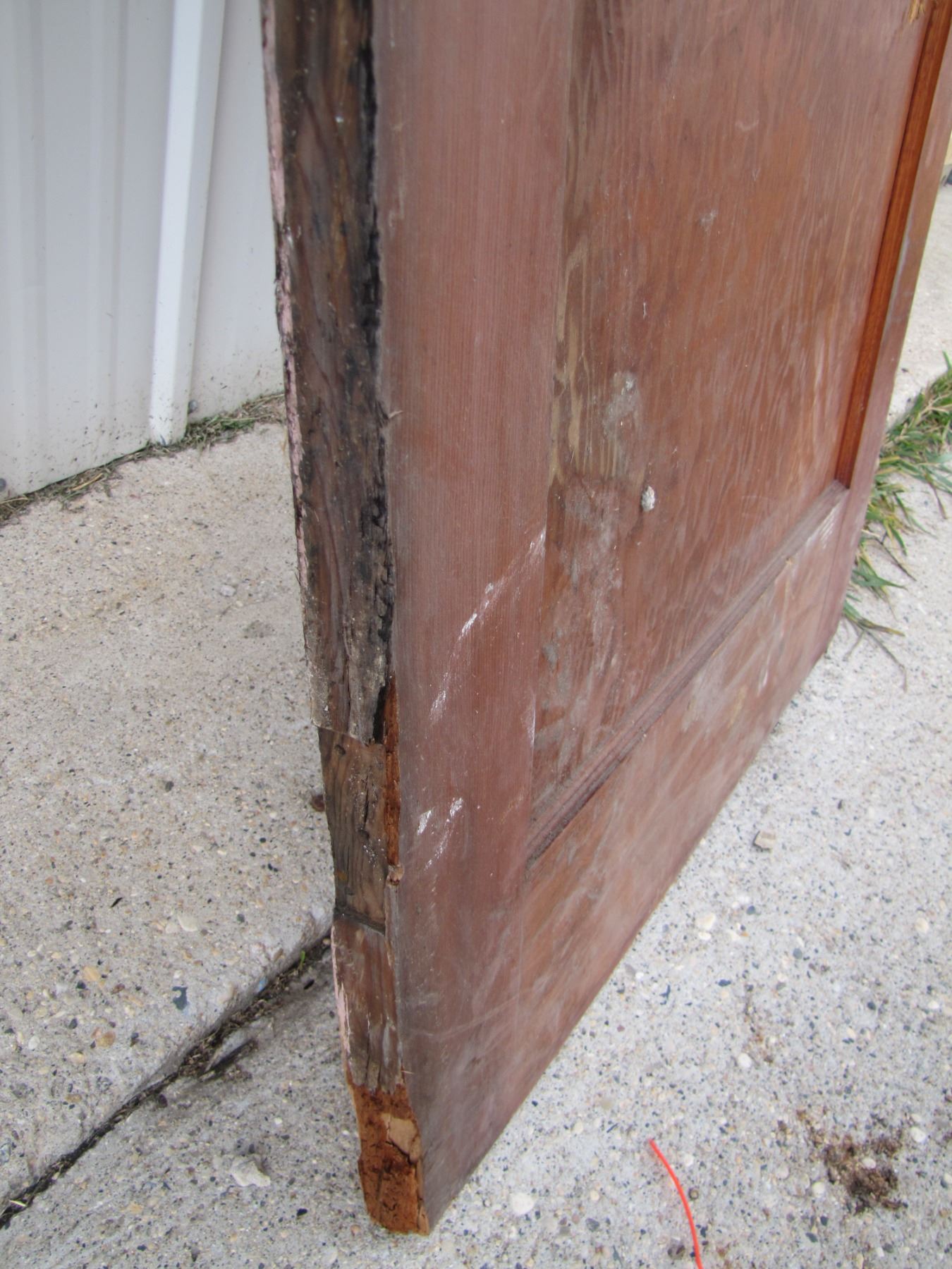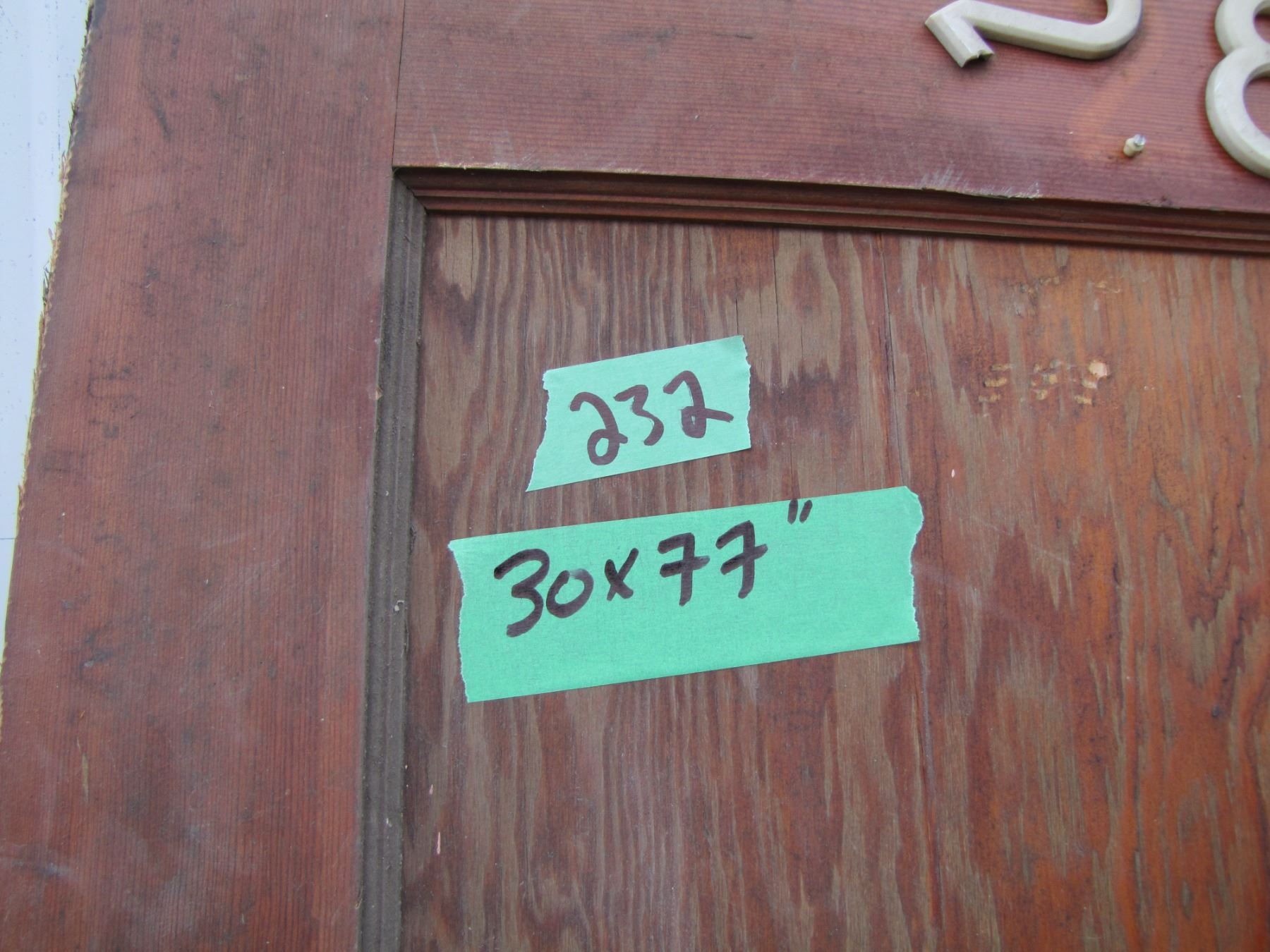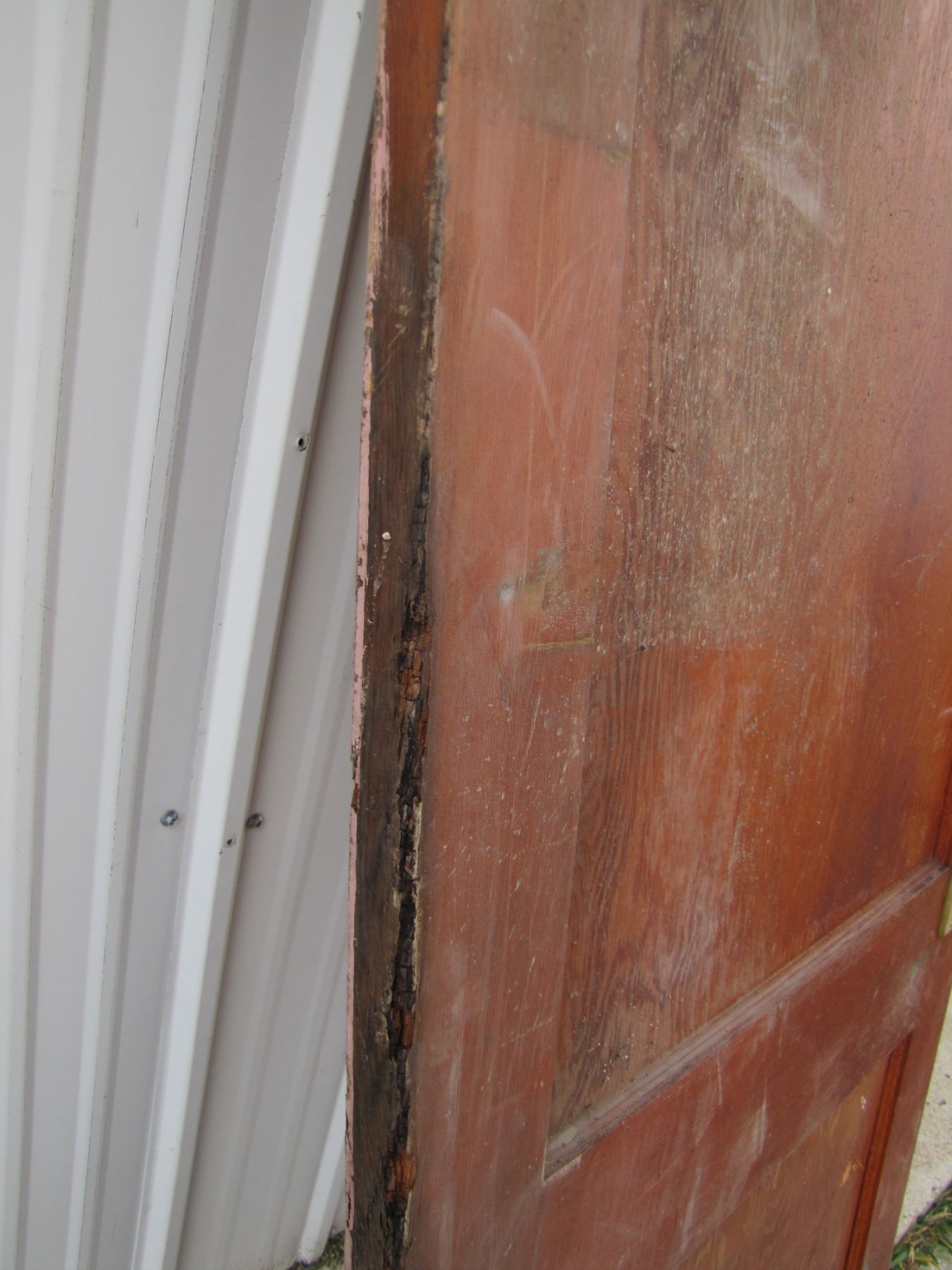 slab door has a bit of rot on one Edge, with key from the Sylvan Court hotel Wasagaming Manitoba, Riding Mountain National Park