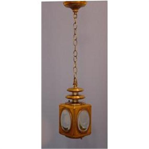 BRASS LANTER WITH BEVELED GLASS drop 29".circa 1930.</em></td>