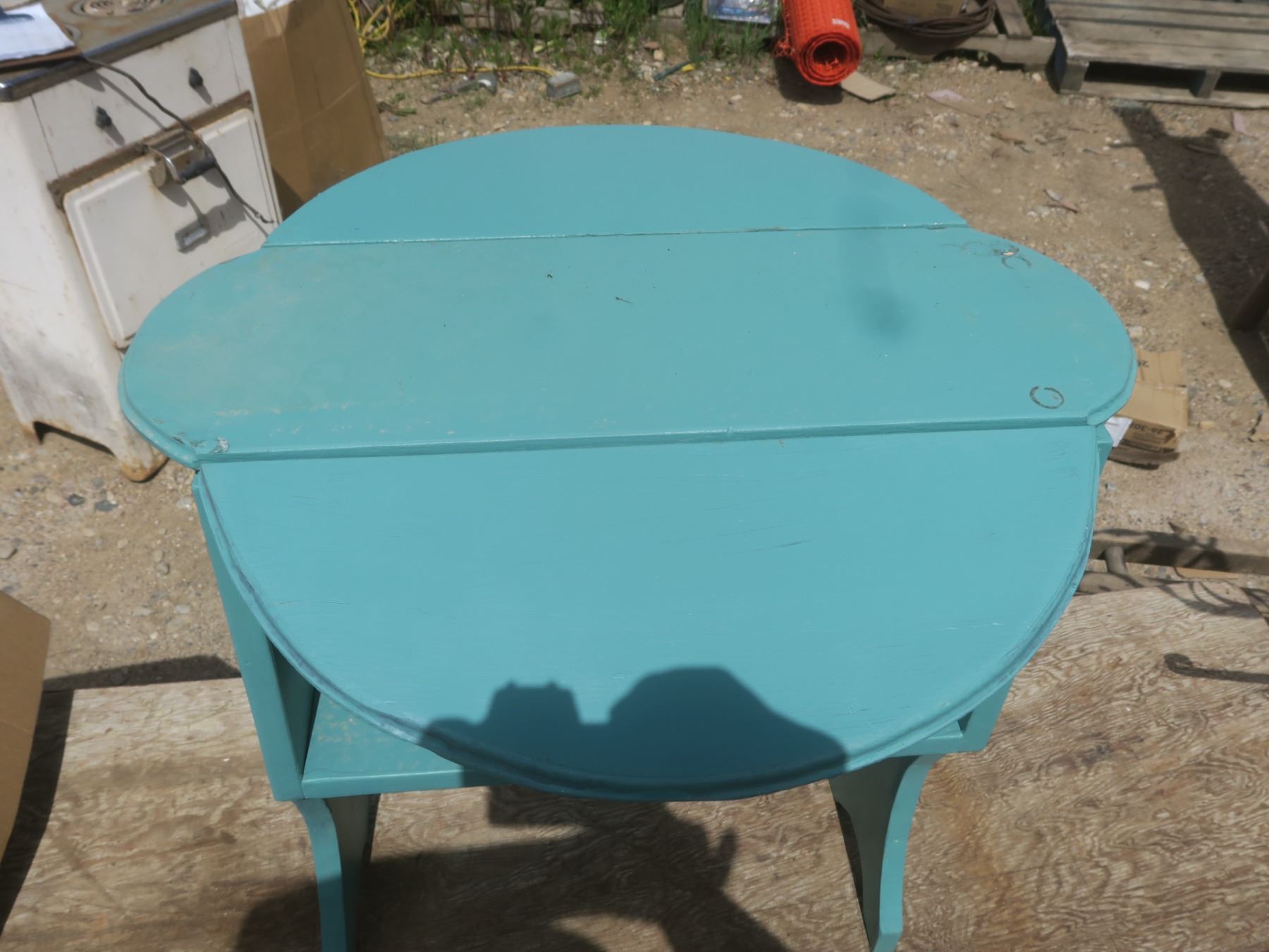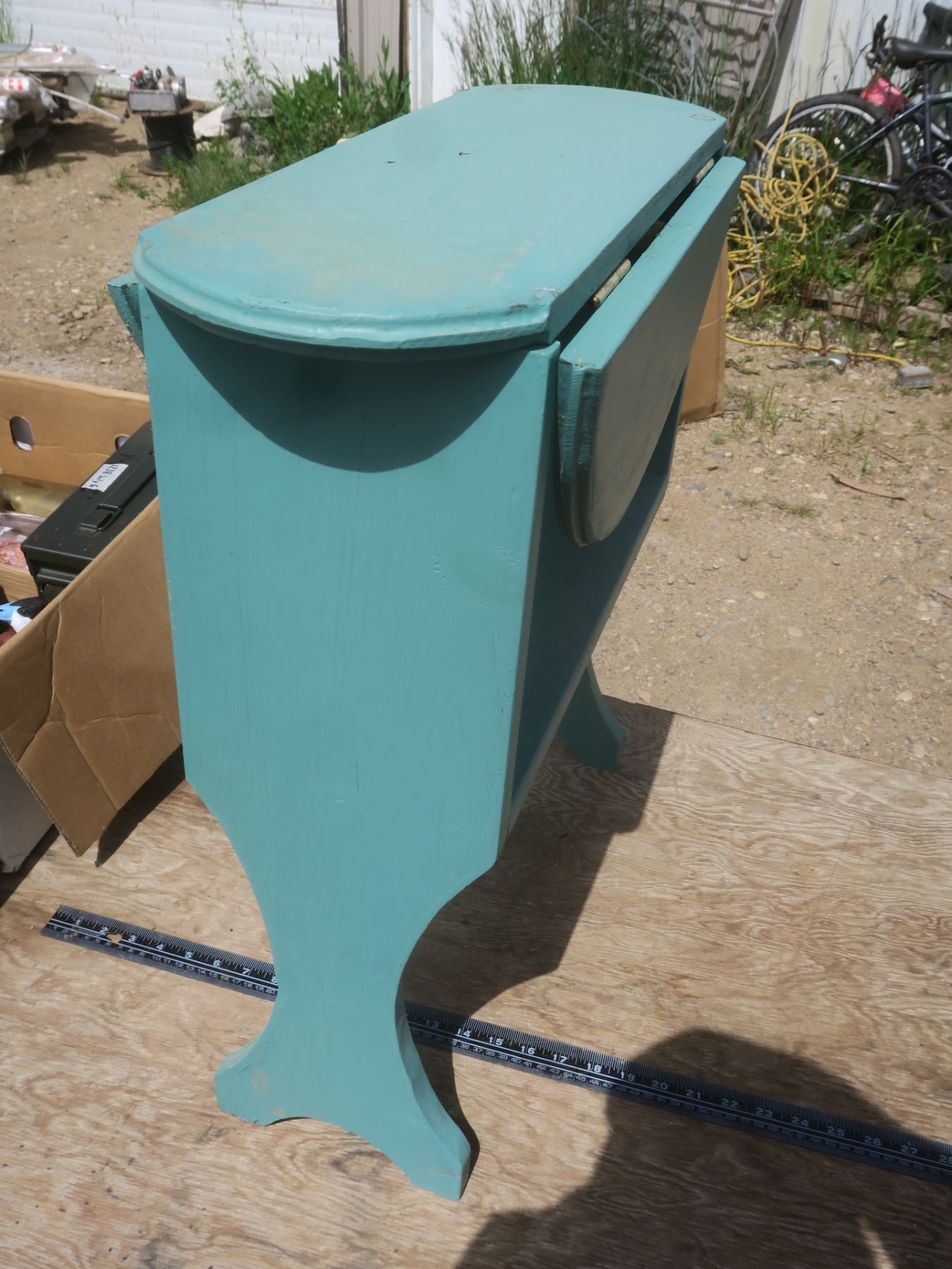 small drop leaf green side table - 22"Lx9"Wx24"H (21"W with leafs)
