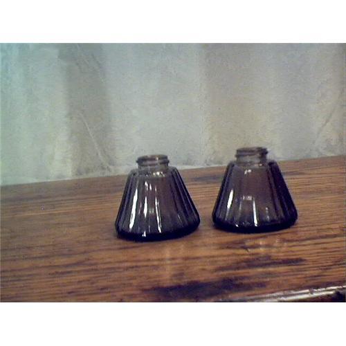 2 old molded smokey glass ink wells.ribbed and in great condition, no chips ,cracks etc.
