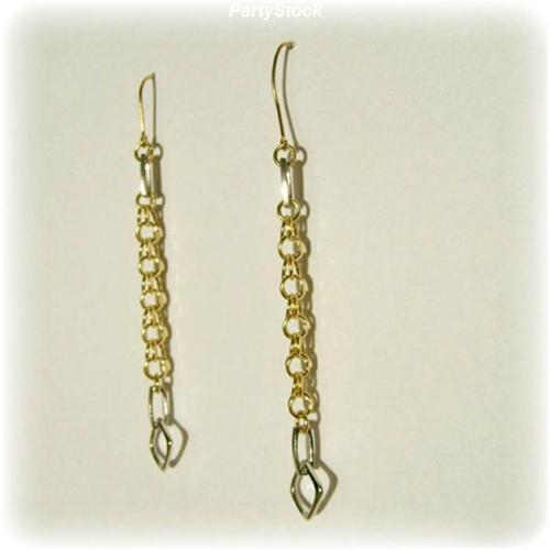 Solid 14 Karat White Gold, Diamond Shaped Pendants measuring 3/8 Inch by 3/8 Inch, dangle from Solid 14 Karat Yellow Gold double chains which are attached to Solid 14 Karat Yellow Gold Pierced Earring wires. These earrings are substantial but extremely lightweight so they won't pull on your earlobe. So comfortable, you'll forget you're wearing them!