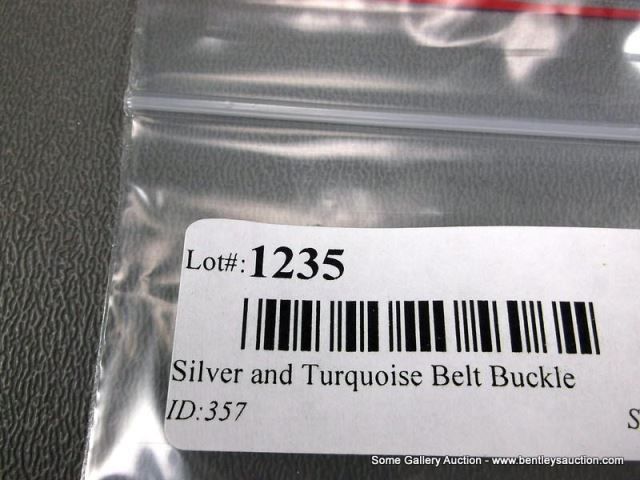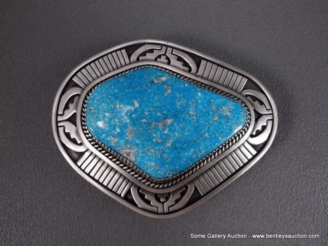 sterling Silver Belt Buckle w/ Large Turquoise Stone-Marked J Weight: 121.6 Grams Retail: $1,200.00