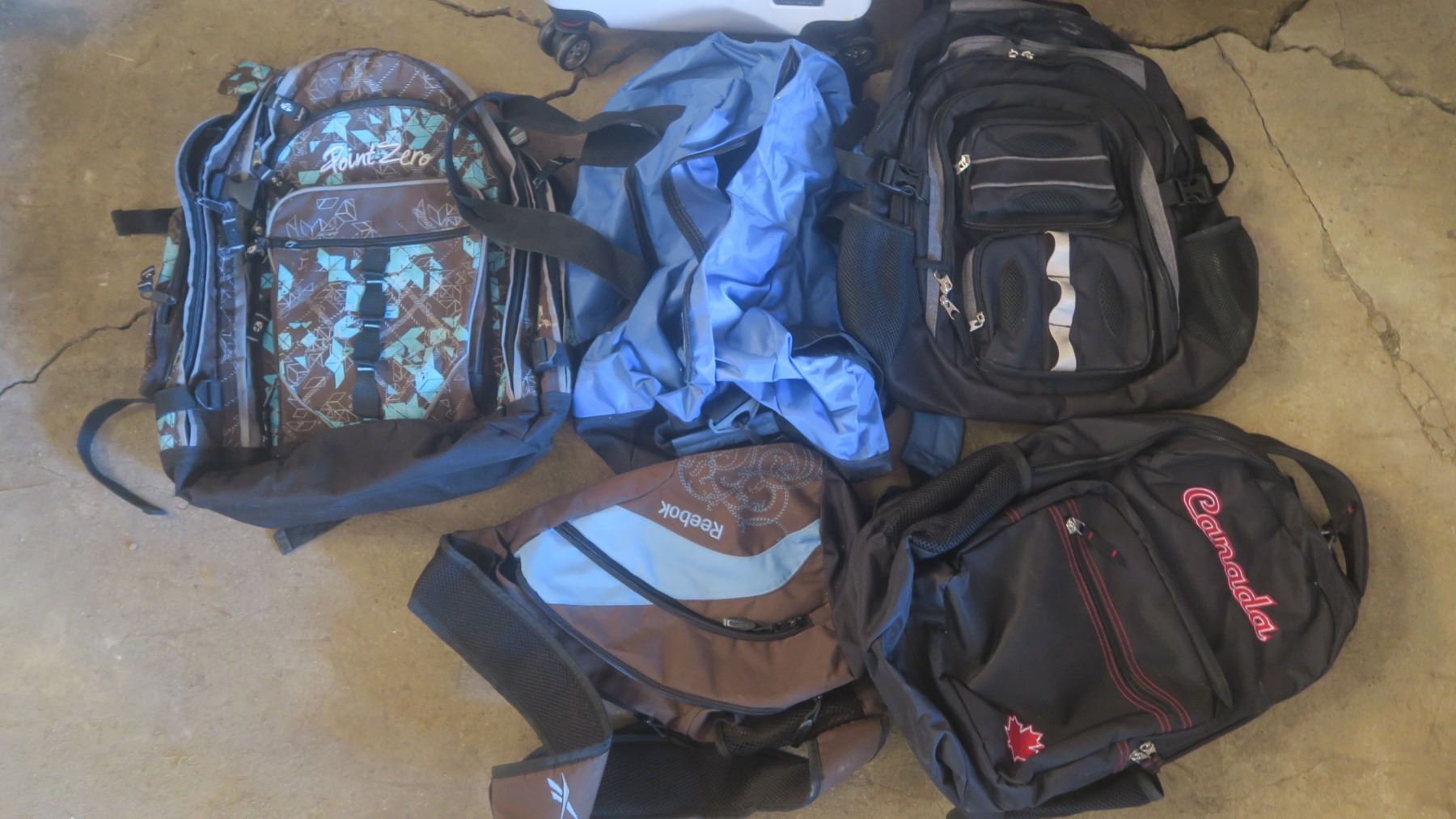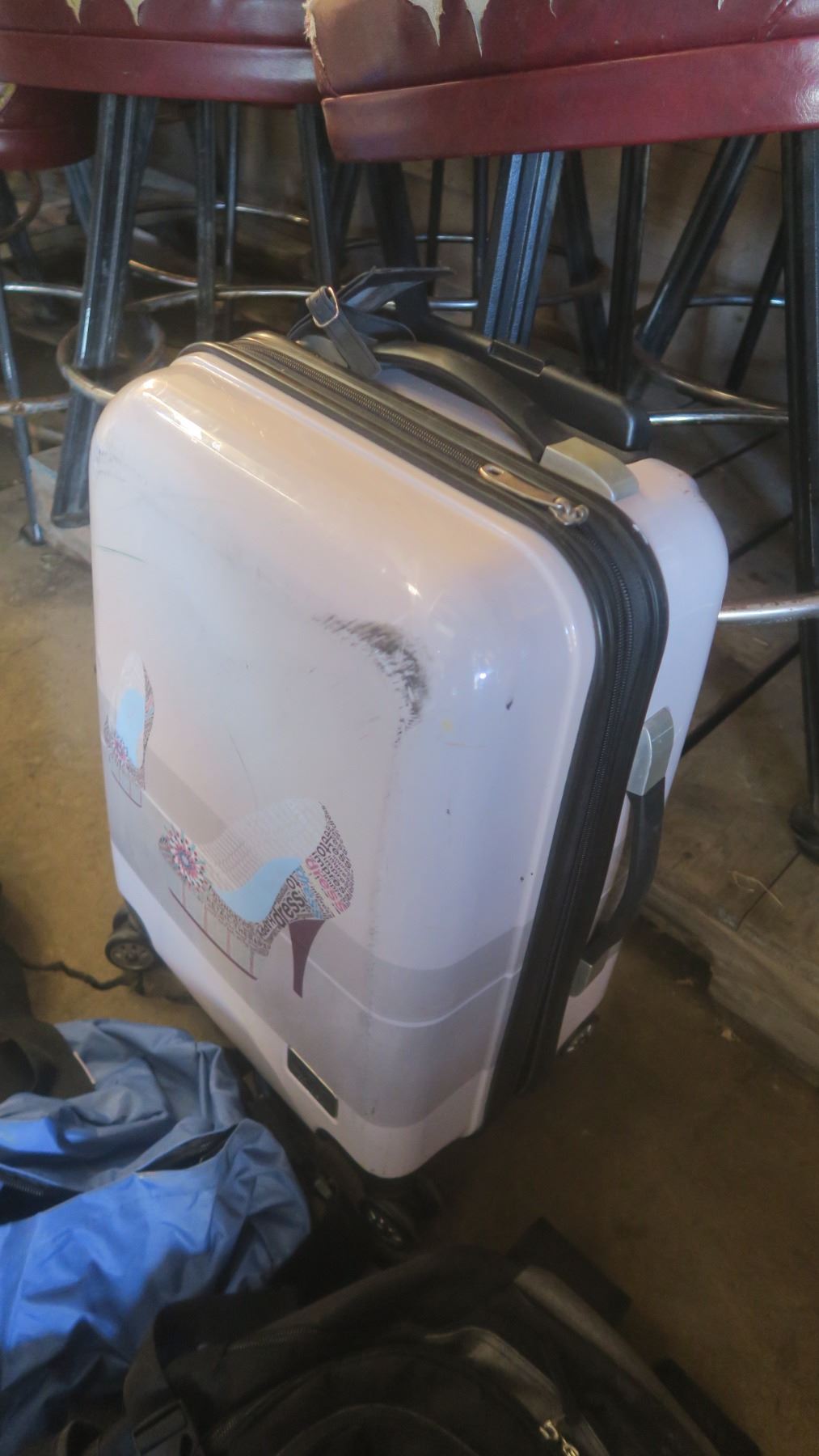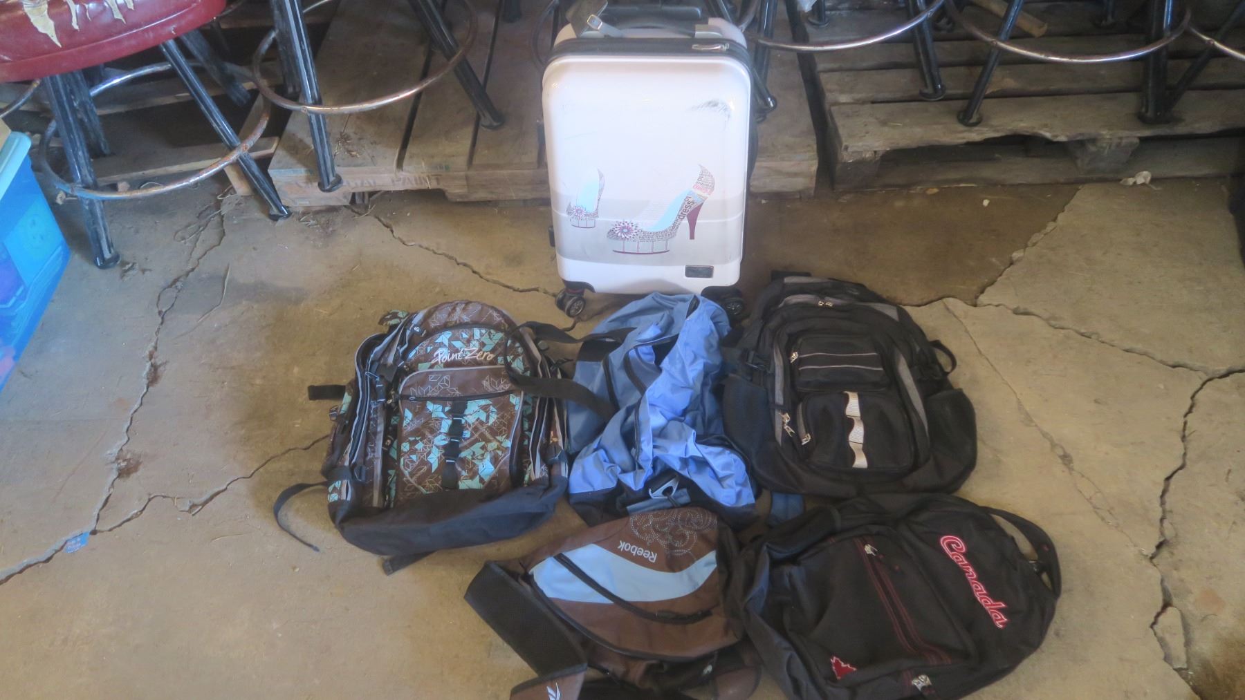 suitcase and assorted bags