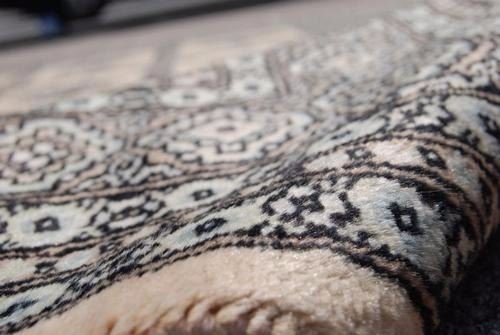 super quality hand made fine bokhara rug, size 6.9 x 8.2 feet, made of all natural, vegetable dye, hand woven, and worsted wool pile on cotton foundation. this is a beautiful bokhara the wool pile is so soft that it feels like velvet to the touch. all over geometric design, please notice the extra skirt at both ends, celebrating the start and finish of the weaving process. creases are due to fold and not a defect. it is noteworthy that the productions of bokhara rugs have dwindled substantially in the past couple of years and therefor affecting their availability in the marketplace, making them subsequently more desirable and sought after. hand woven in pakistan.