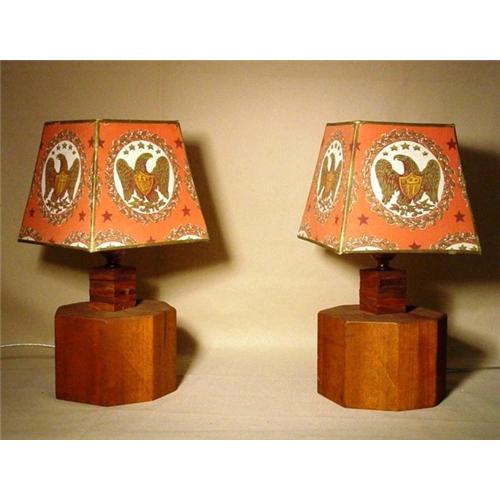 </font></strong> Pair of wood table lamp with shade.Height 12 " diameter 6 ".Prolaz Gallery </font>
