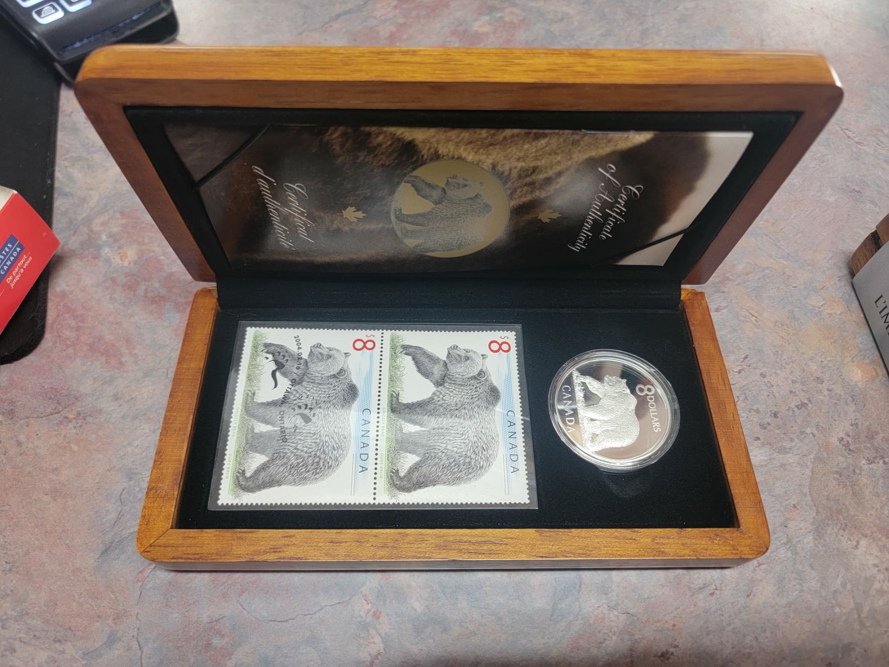 the great grizzly $8 limited edition sta,p and coin set