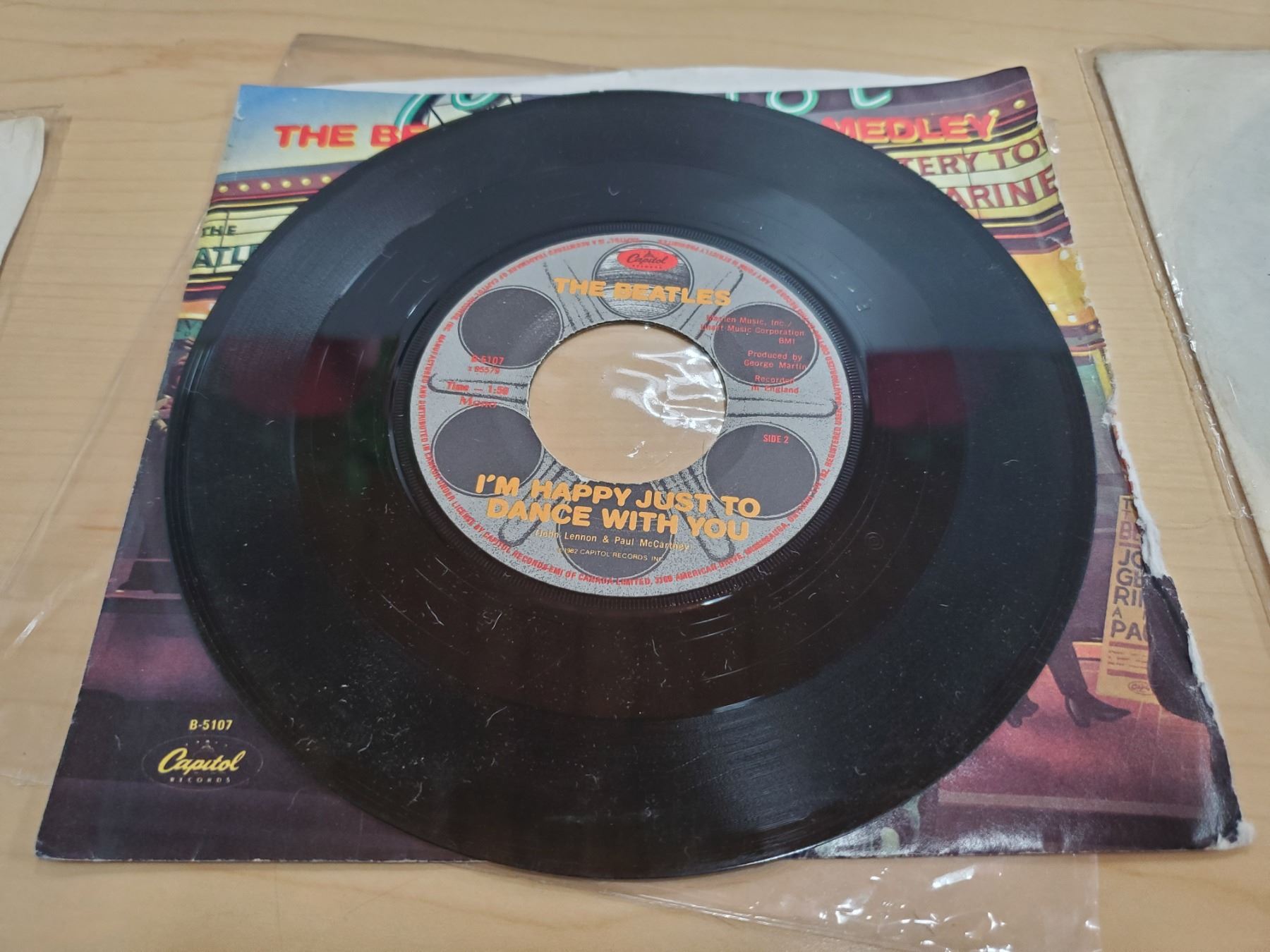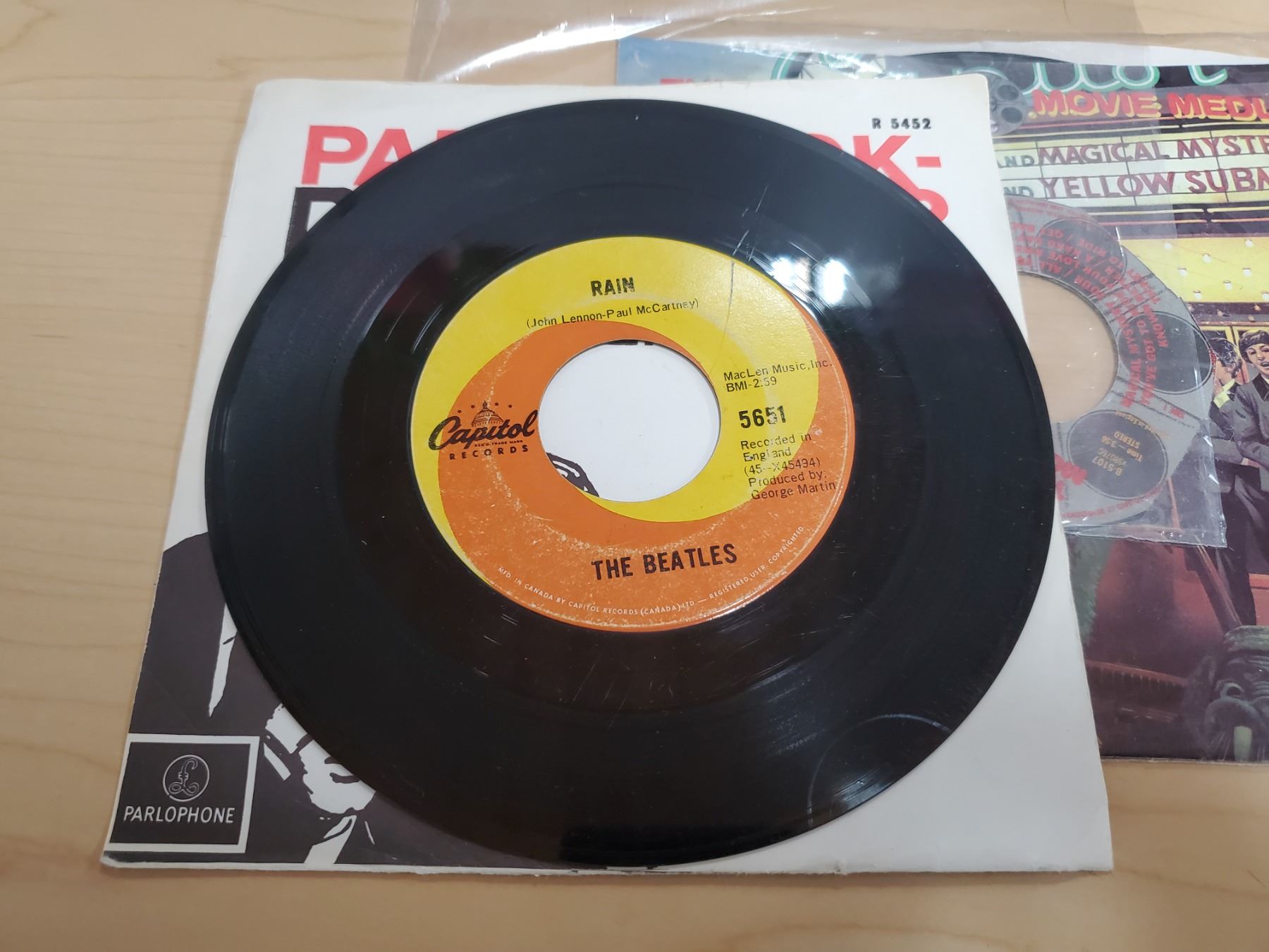 three 45 beatles records