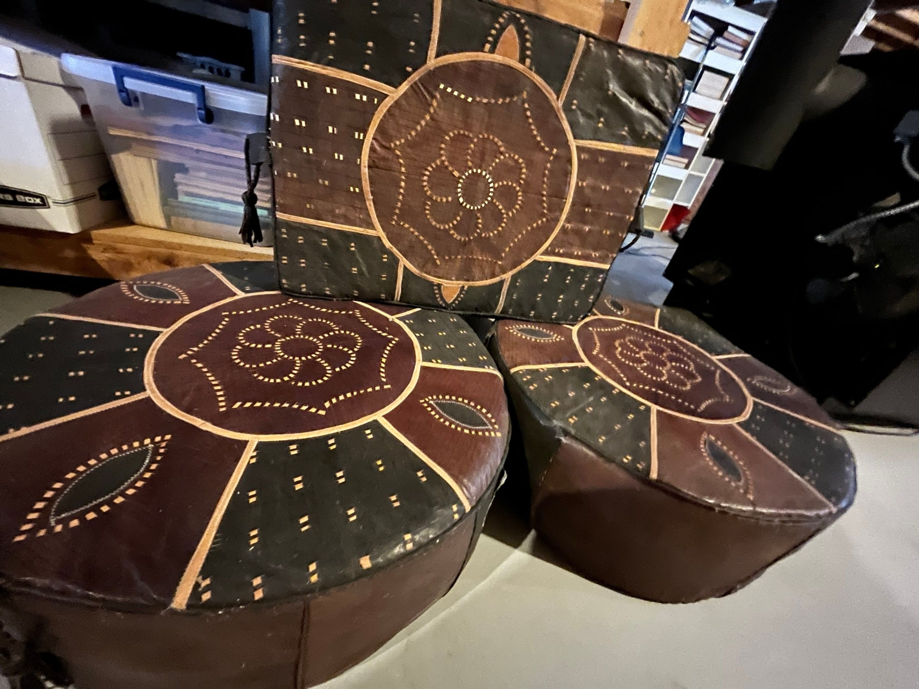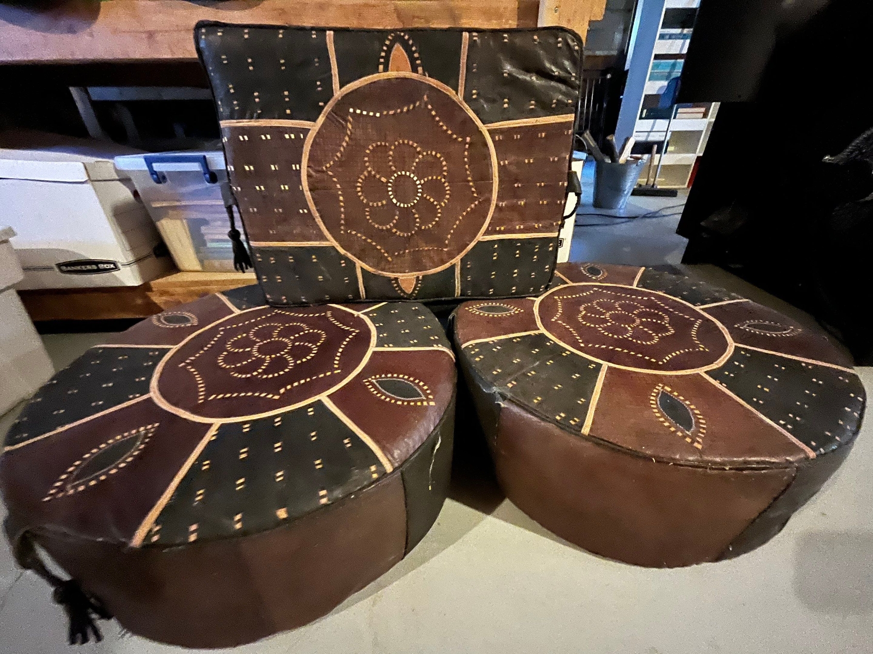 three leather handmade Nigerian footstools