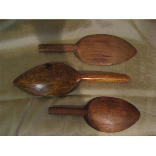 <tr><td>Title:three small hand carved wooden grain spoons</td></tr>