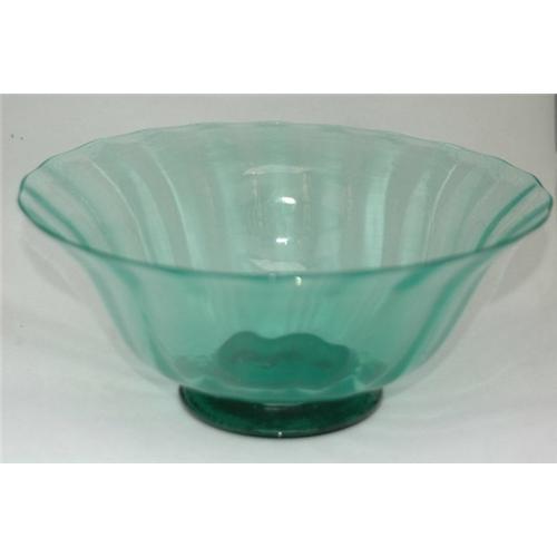Signed and numbered Tiffany Favrille Bowl. (#162 P) and signed (L.C.Tiffany Favrille). One photo, you can see the signature, but the numbers and letter I could not photograph. They are to the left of "L.C". This bowl was extremely hard to photograph because of light refraction, and I did the best I could. It is 10" wide and 4 1/2" high. The color appears to be mint green. It has two different patterns in the glass. The first, seen in the photos, a controlled bubble pattern that goes completely around the rim and two inches down. (one photo shows partially the controlled bubble pattern.) Also, the glass has verticle ribbings extending from the rim and going to the base. The bowl sits on a 4" wafer base where it has a large polished pontil, and also there is the appropriate age markings on the bottom. Aside from a couple of straw markings, which were done during manufacturing, or tool markings, there are no damages, chips, flea bites. The bowl rings absolutely beautiful when taped with your finger.