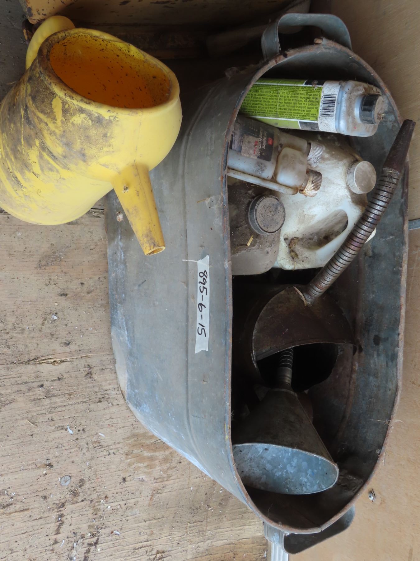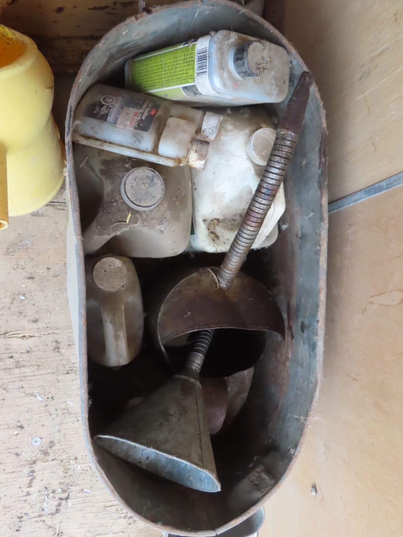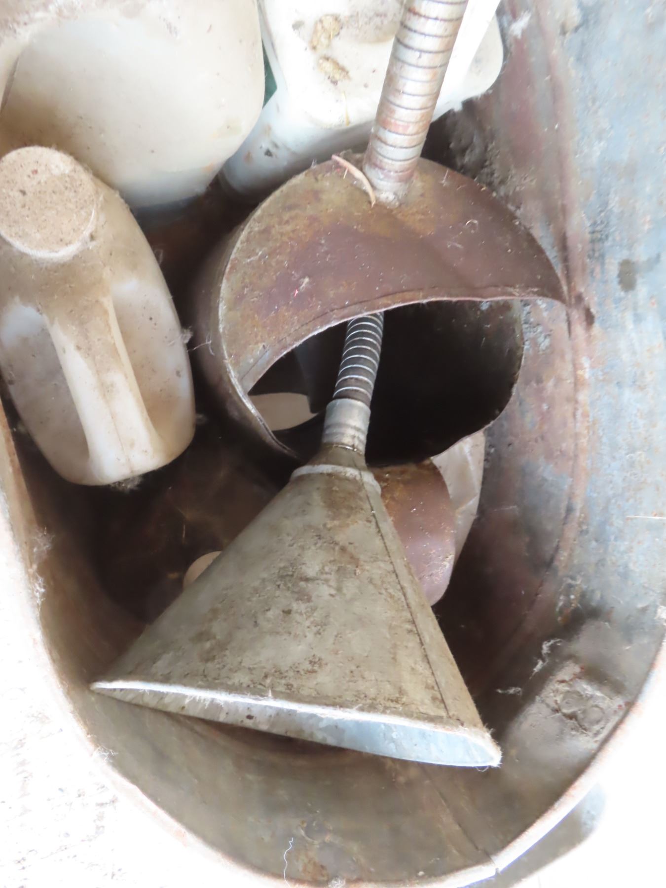 tin can with assorted oil funnels