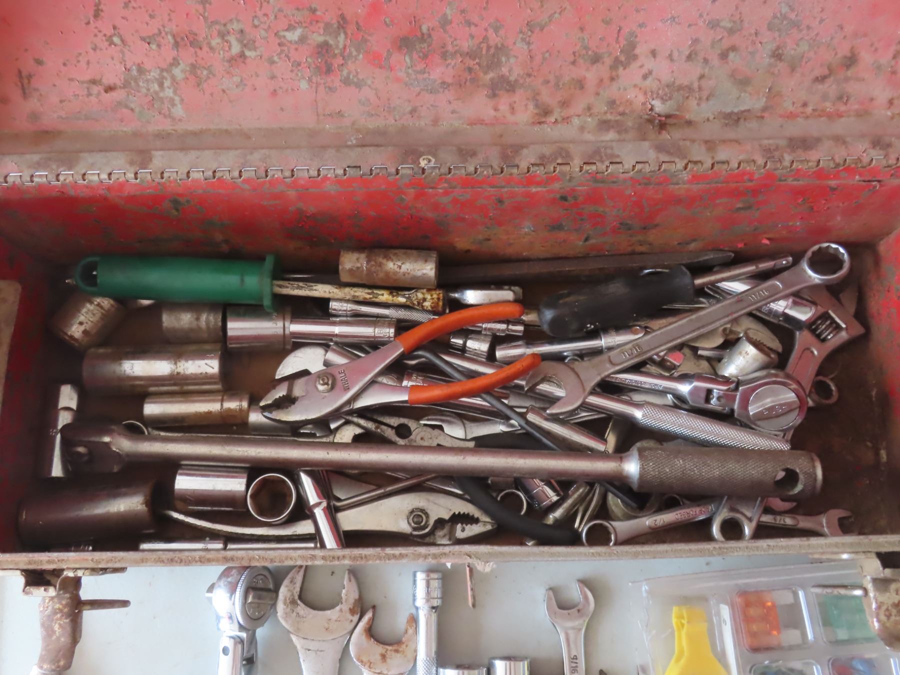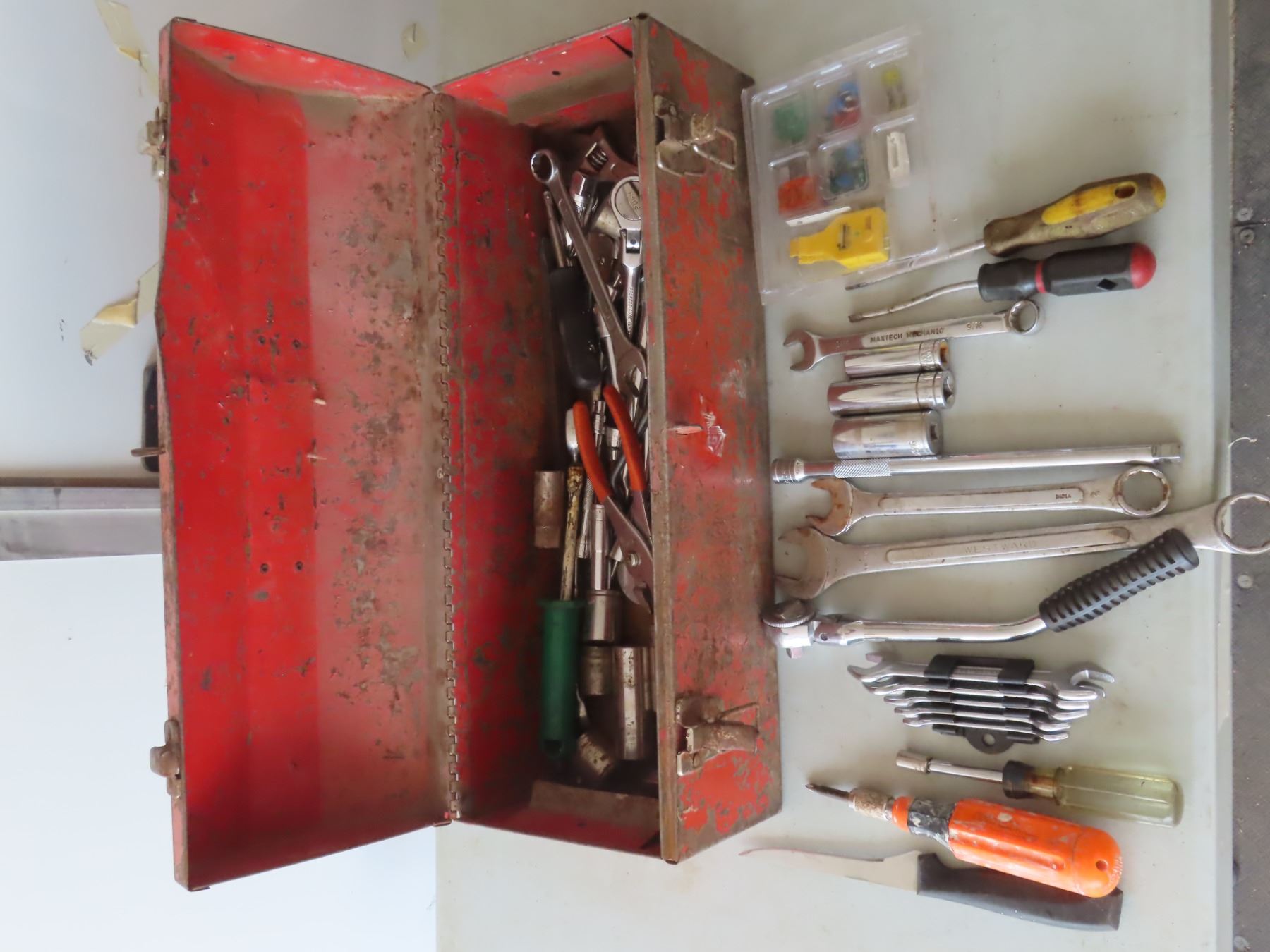 toolbox with wrenches , sockets , ratchets