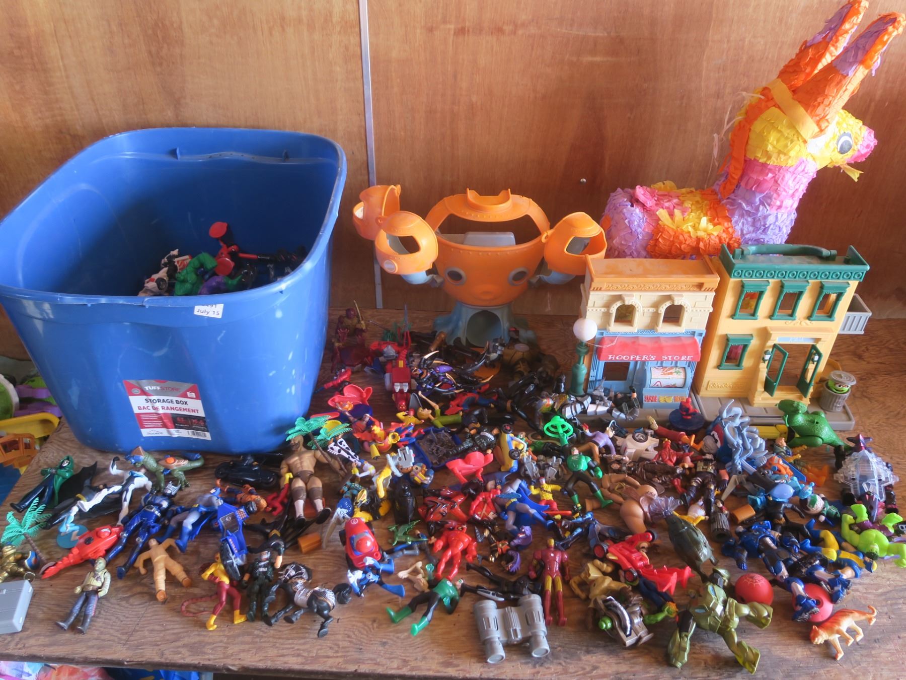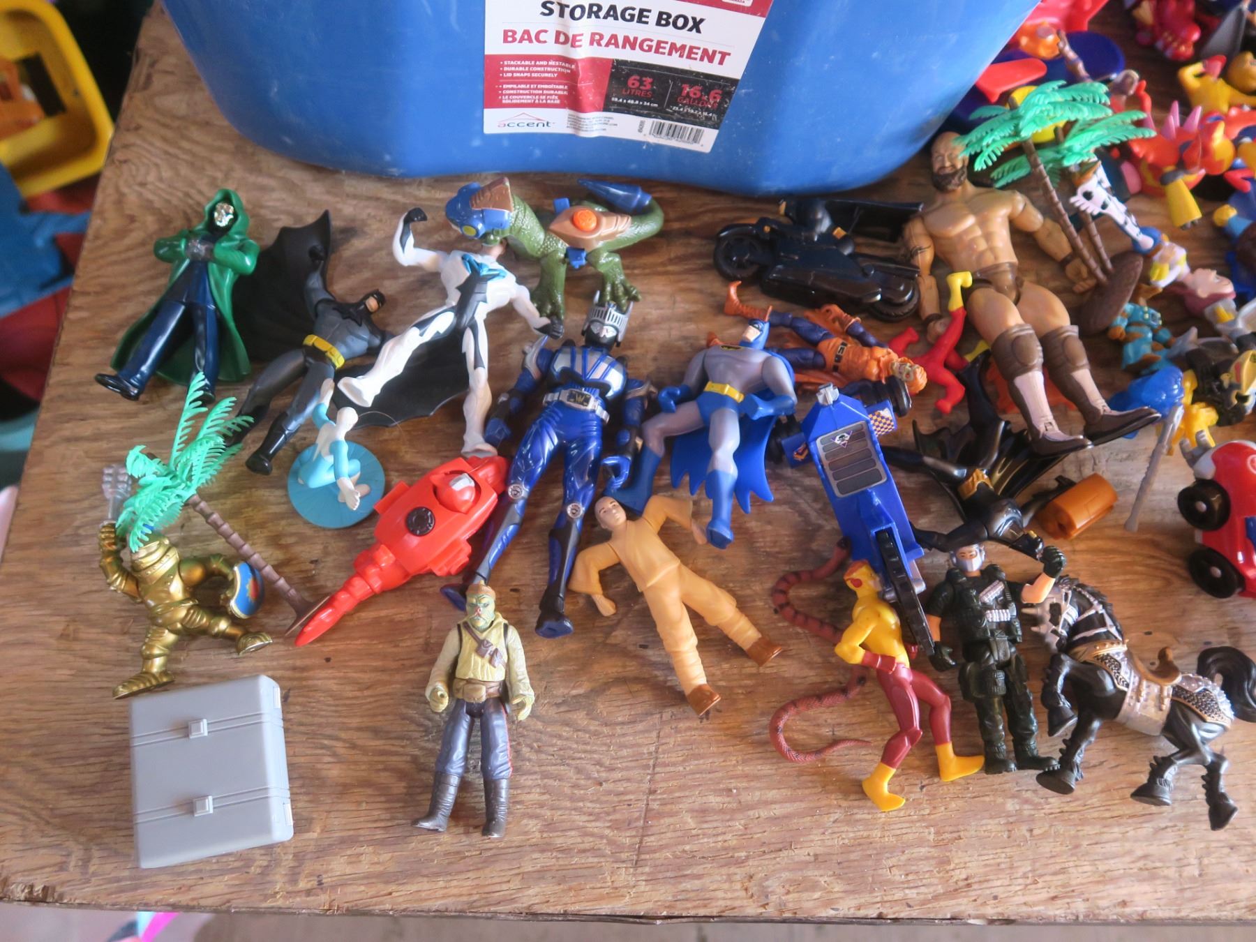 tote of assorted toys