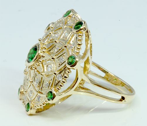 tsavorite 1.07 ct & Diamond 0.48 ct Ring 10.02 gr 14K Yellow Gold nGVK 2/11/15/1