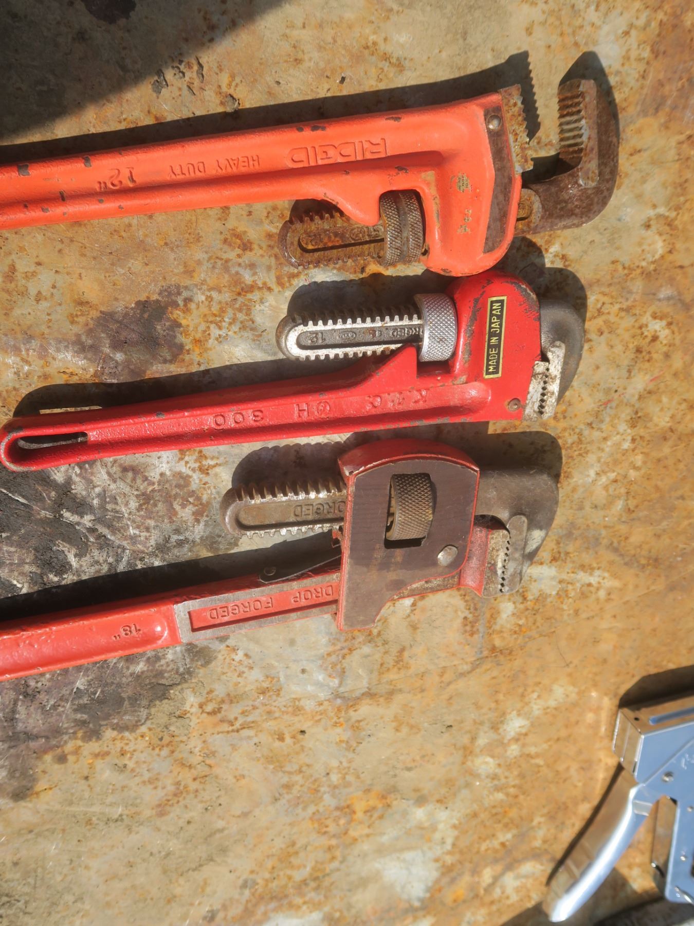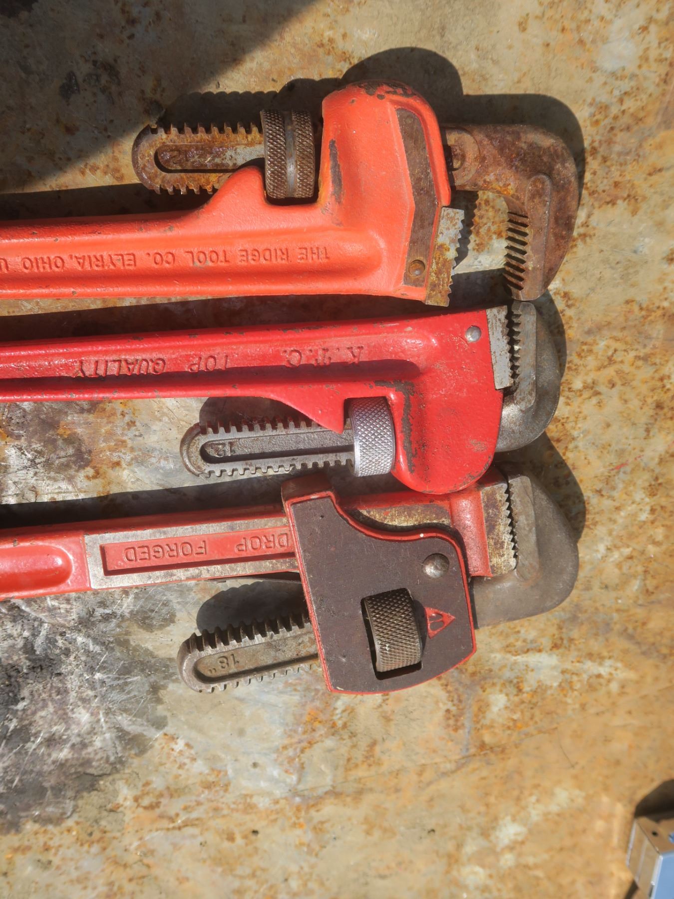 two 12" and one 18" pipe wrenches