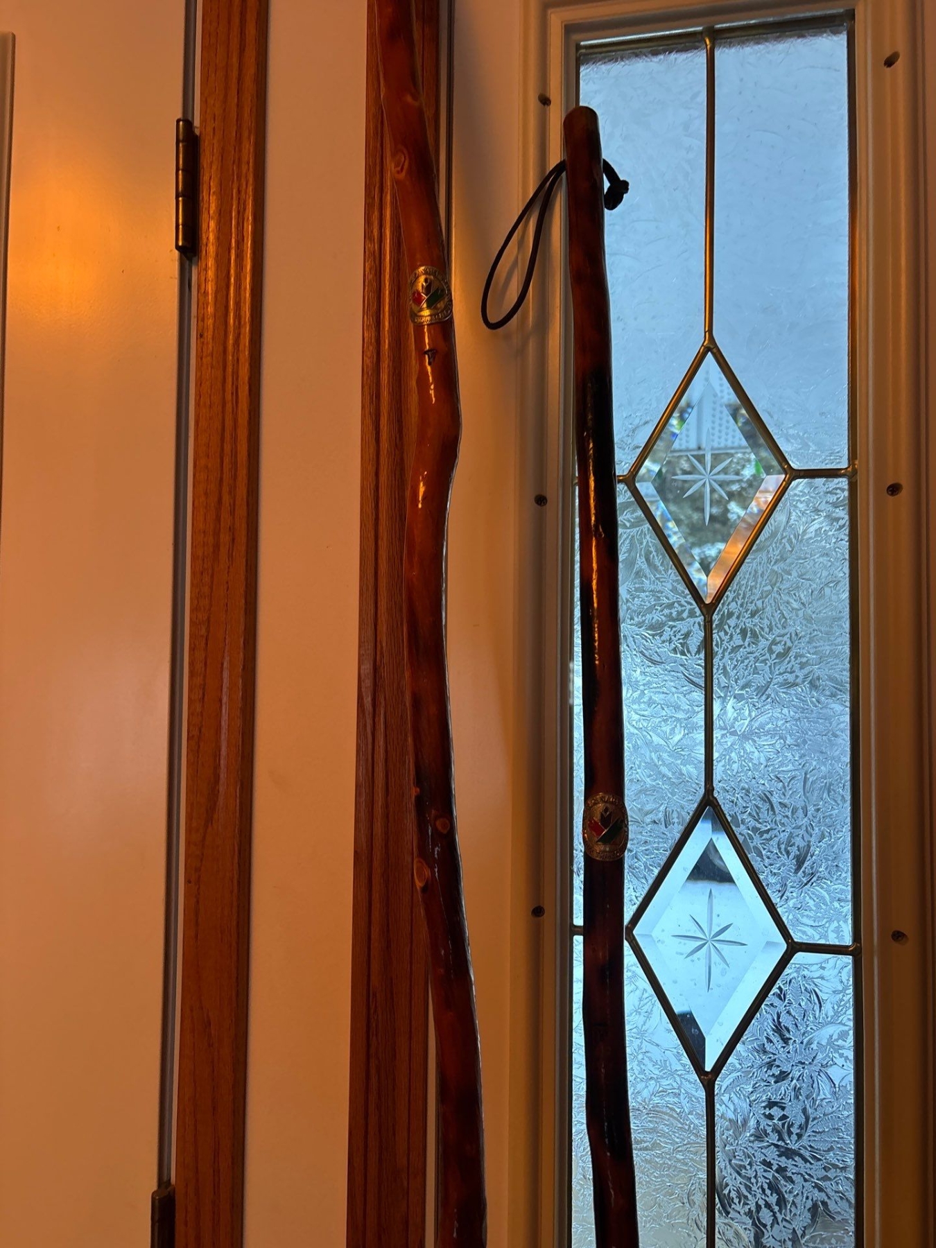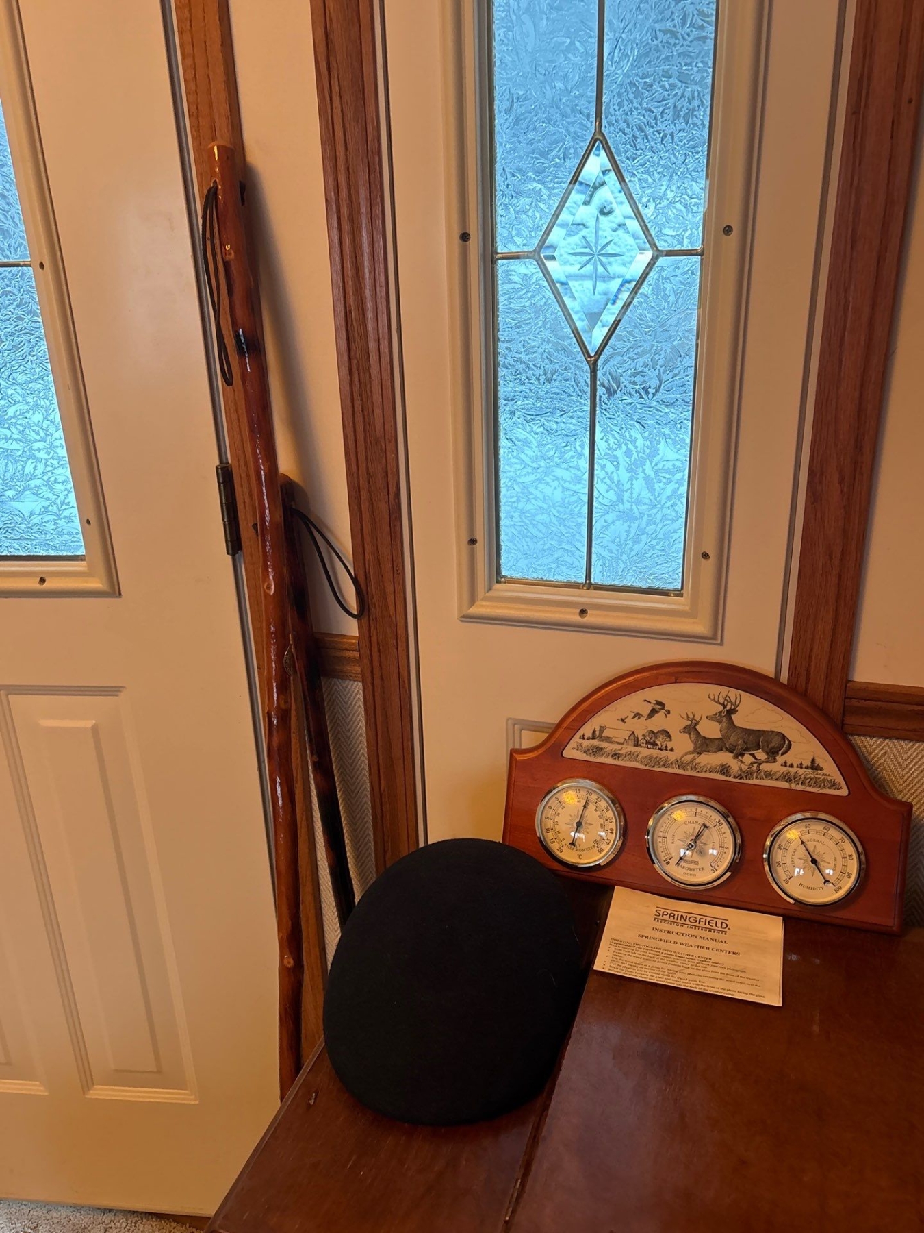 Two beautiful Canadian Trail, walking sticks barometer made by Springfield precision instruments, and a men’s wool hat