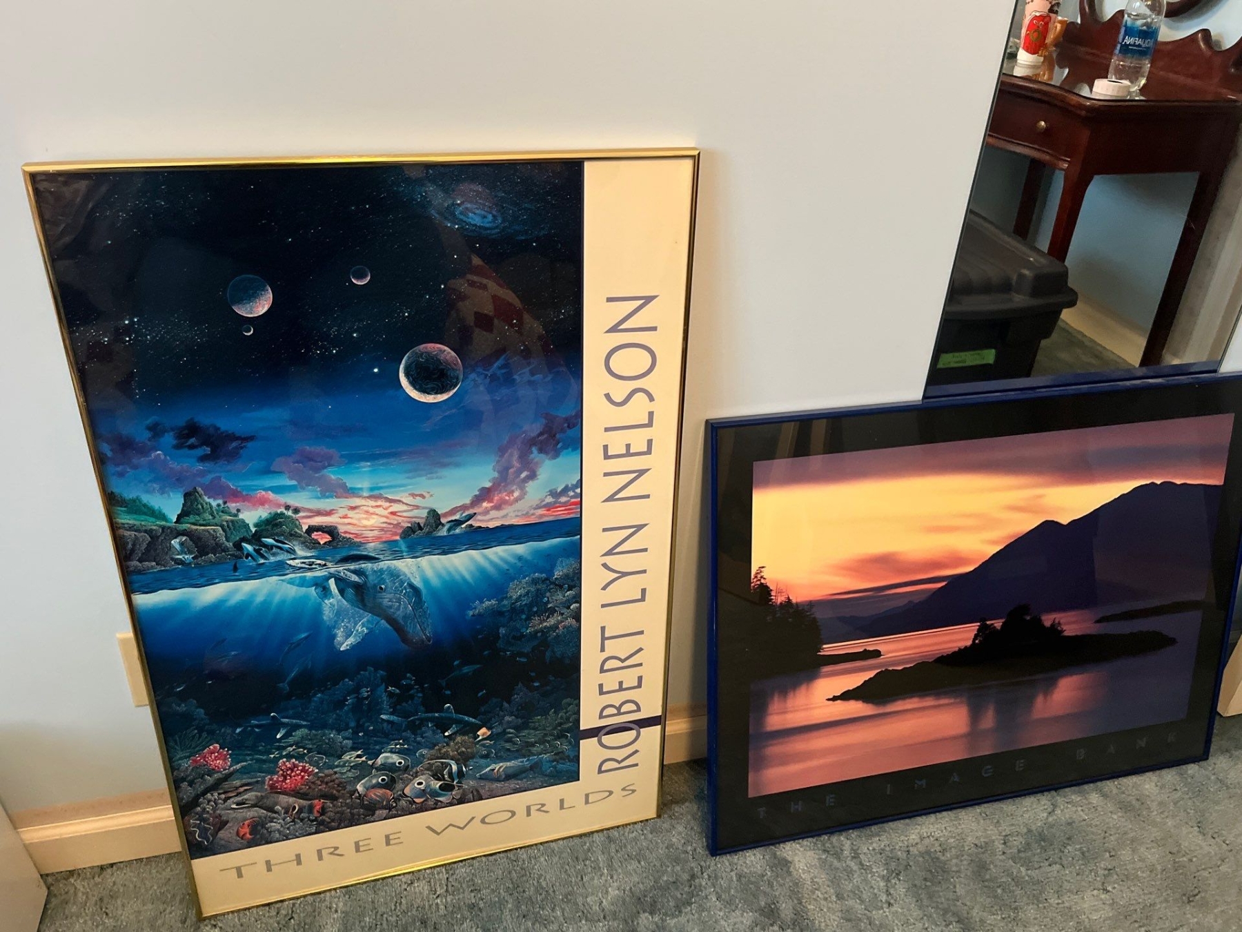 two framed prints one by Robert LYN Nelson named three worlds and The Image Bank artist unknown