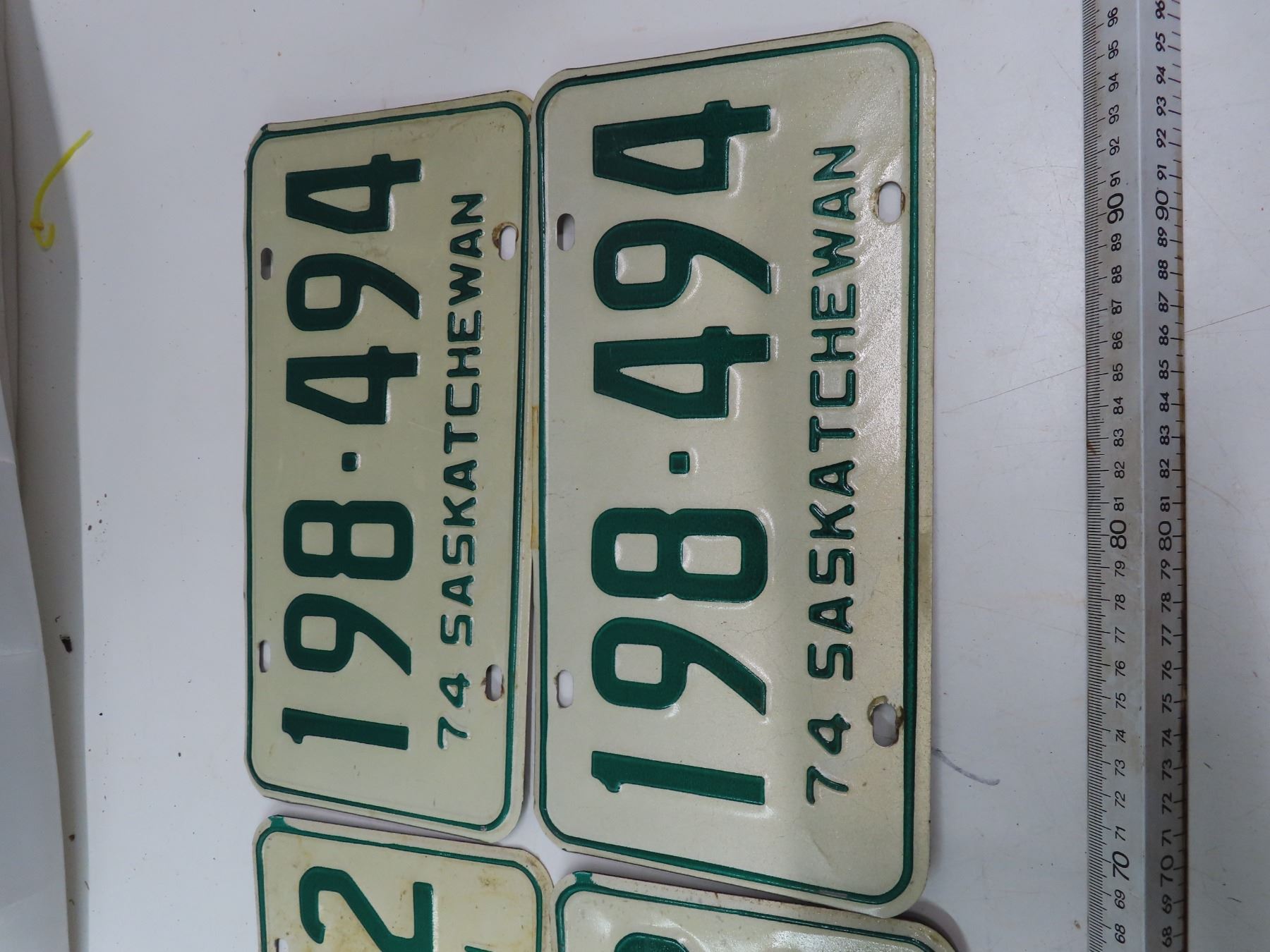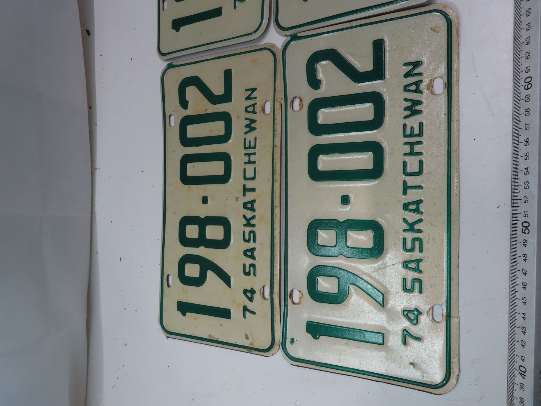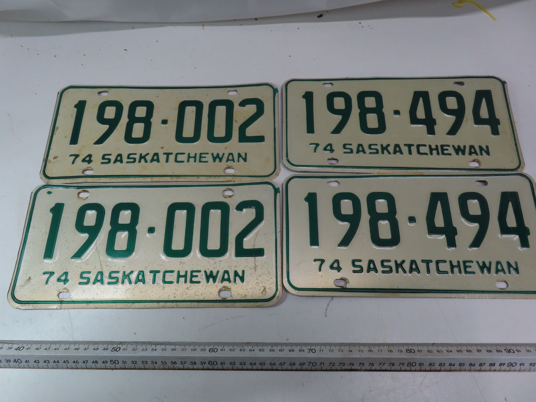 two matching 1974 SK licence plates