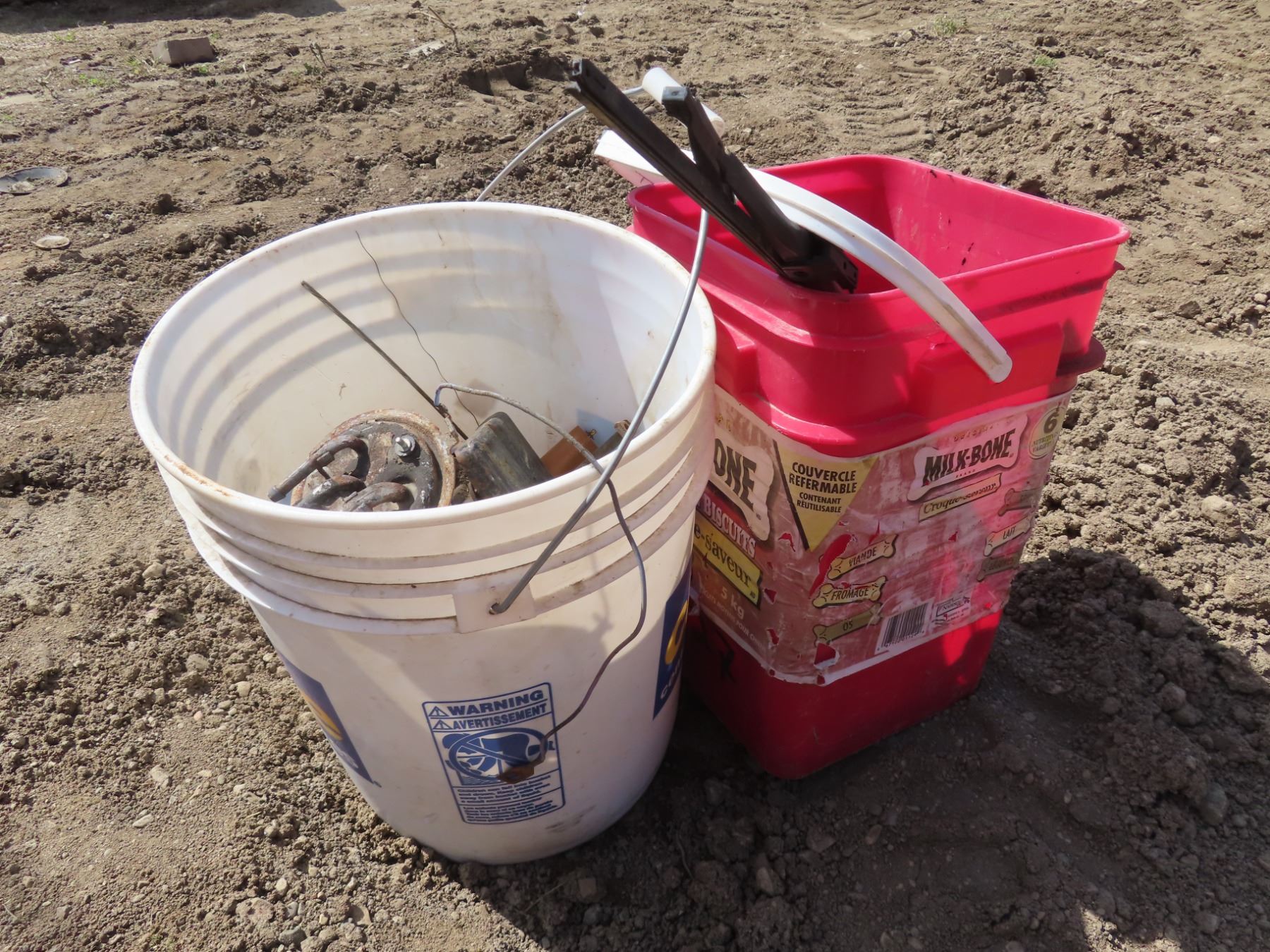 two pails with assorted GM / Chevrolet parts