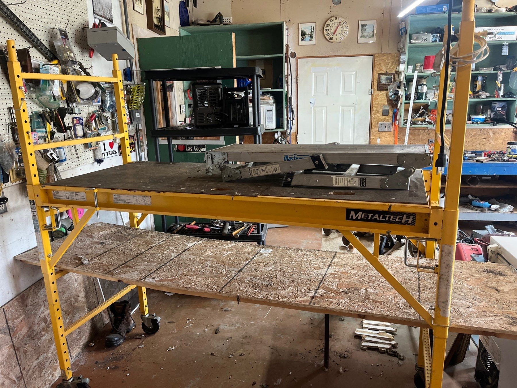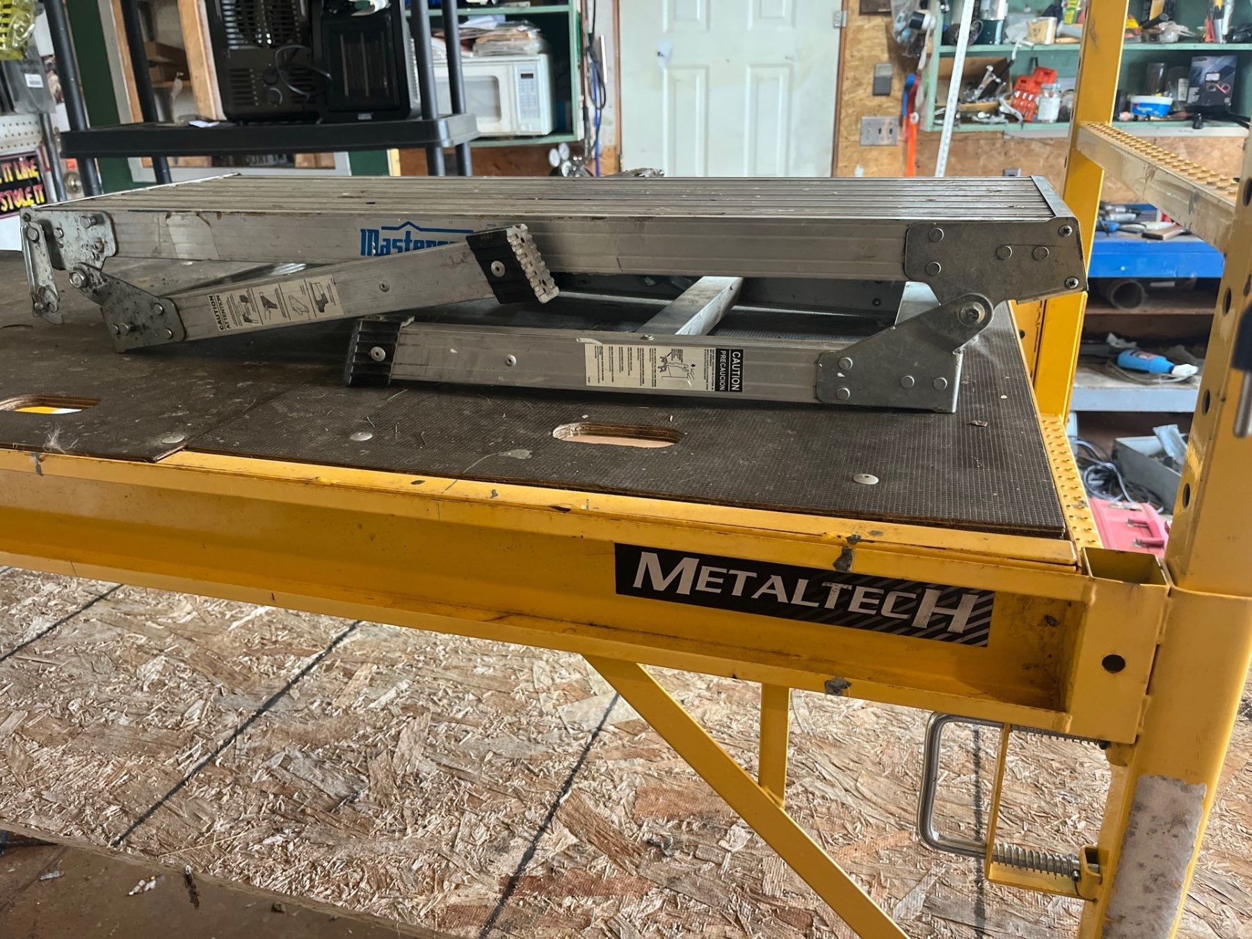 Two Stage Metaltech collapsible scaffolding with small step ladder