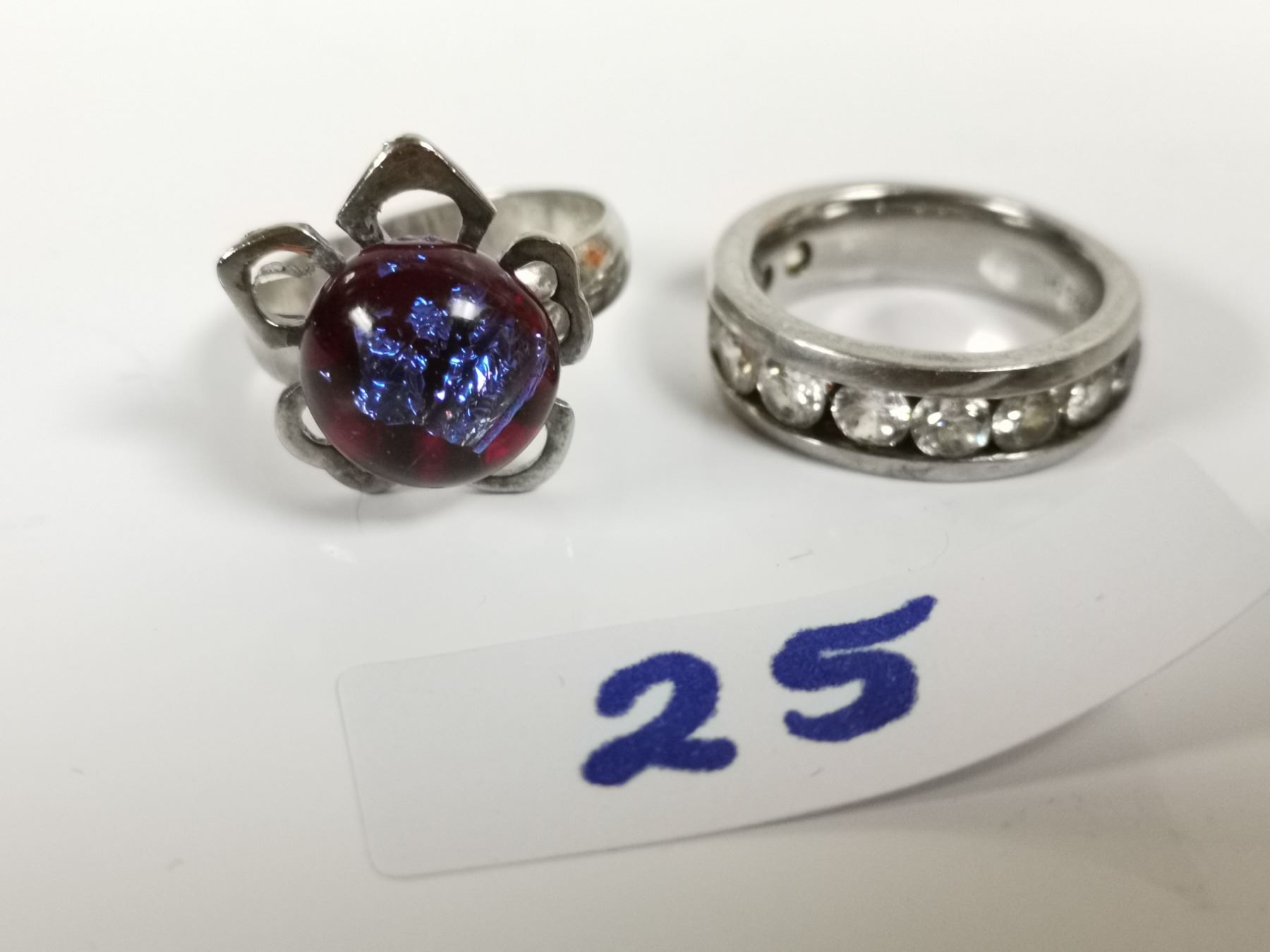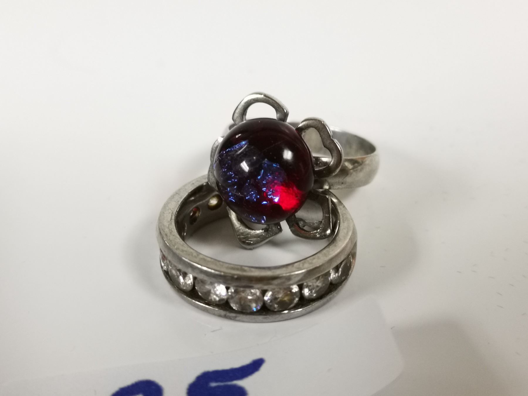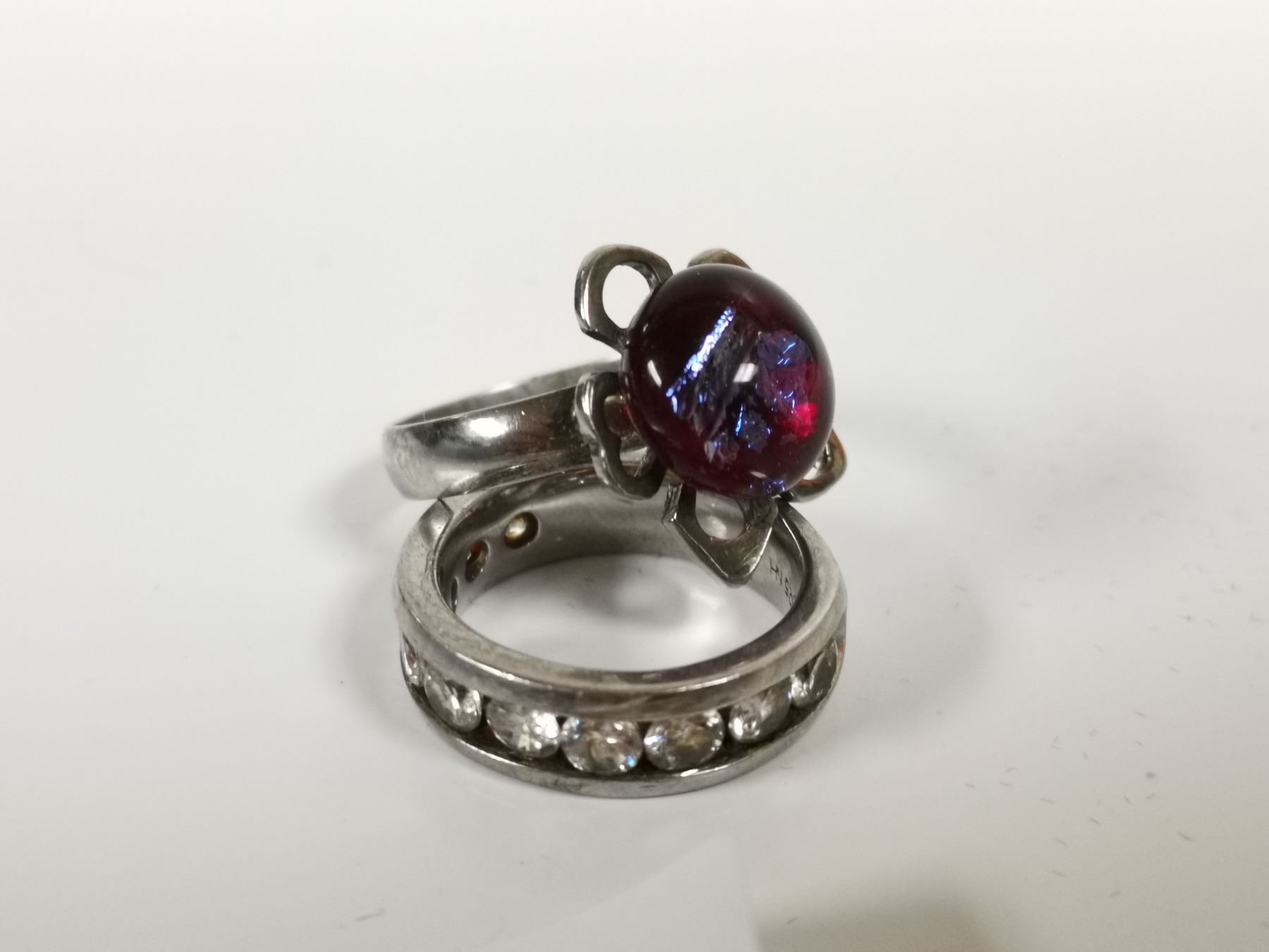 two sterling silver rings, one with opal