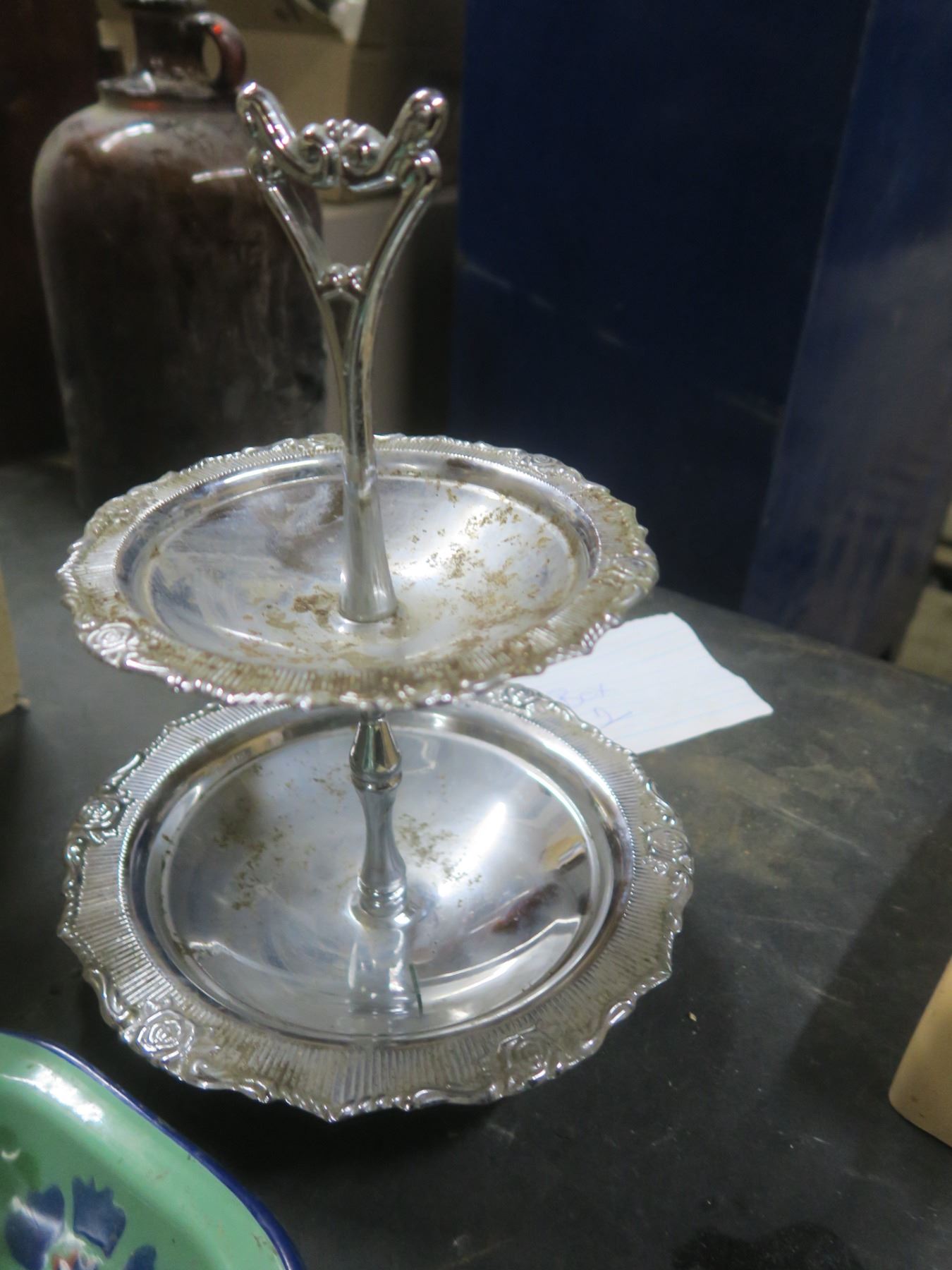 two tier candy tray phone and a green tray