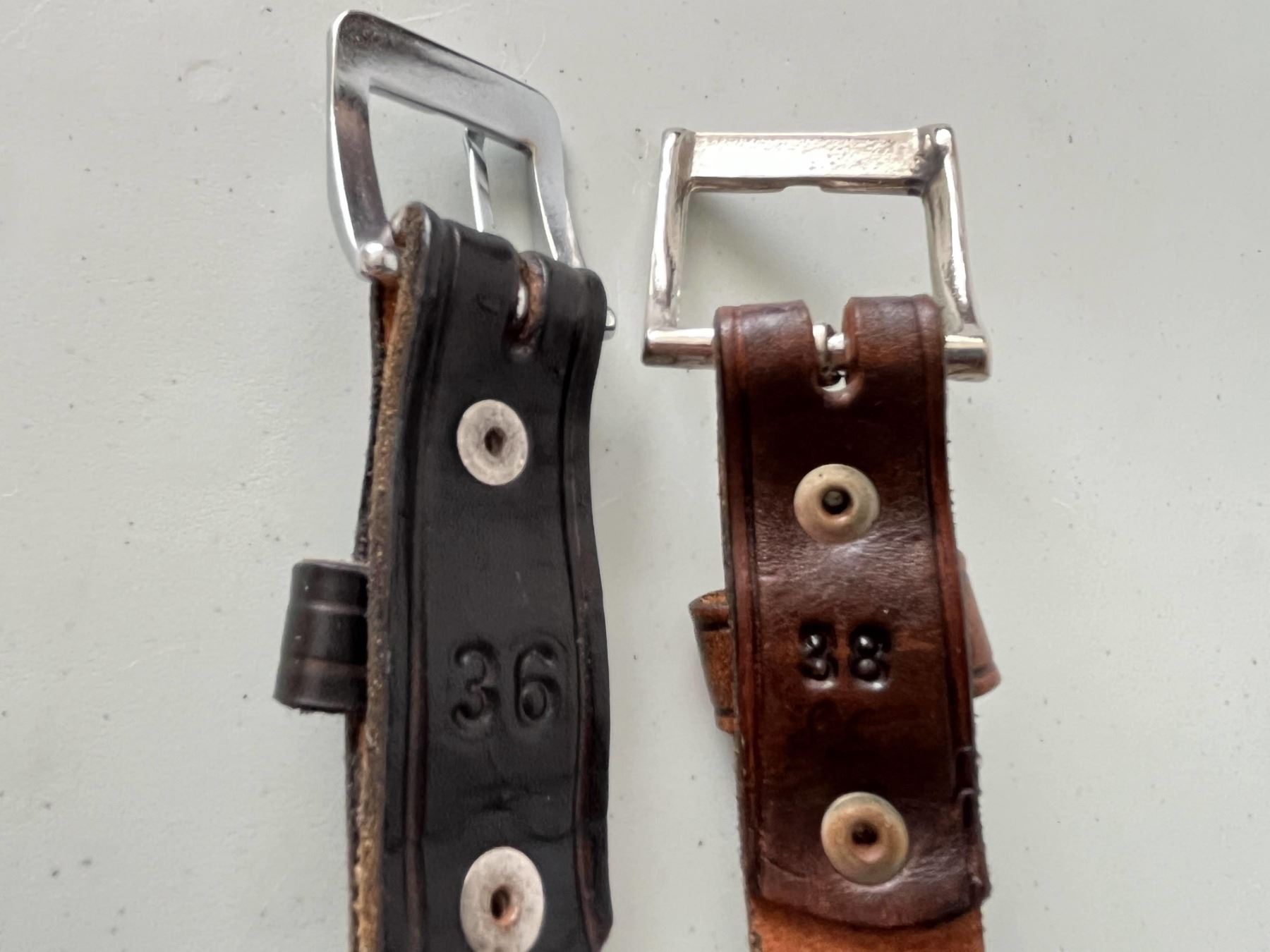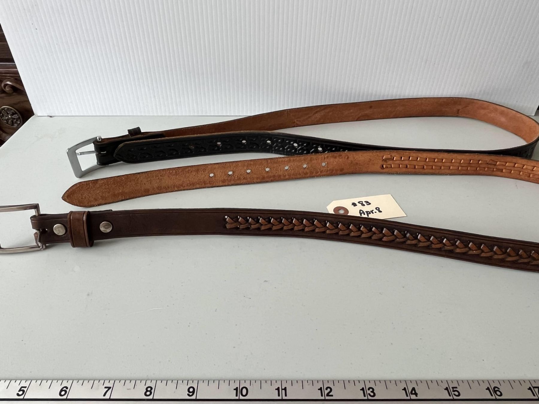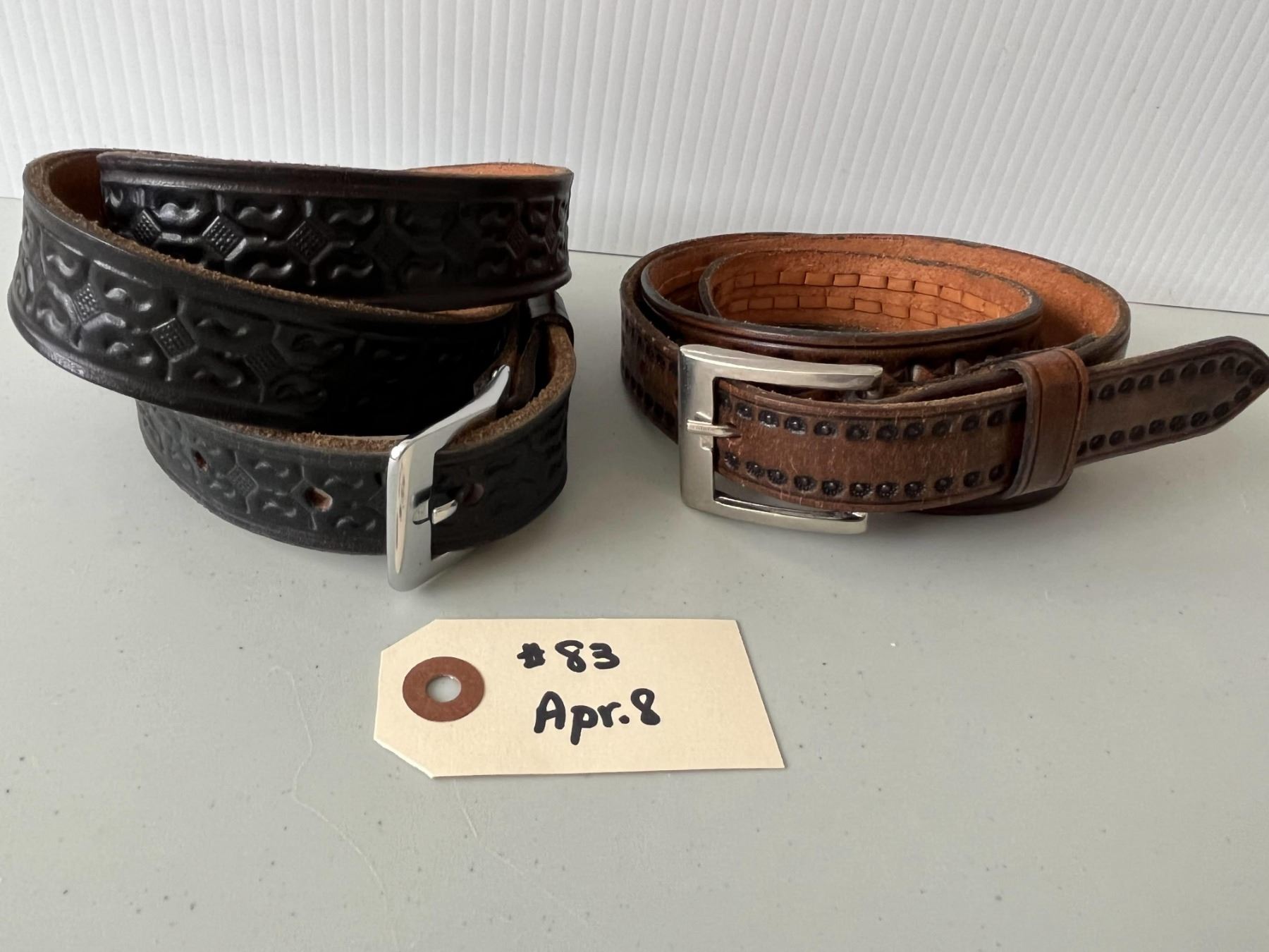 two tooled leather belts sizes 36 & 38 - purchased in Mexico. EUC