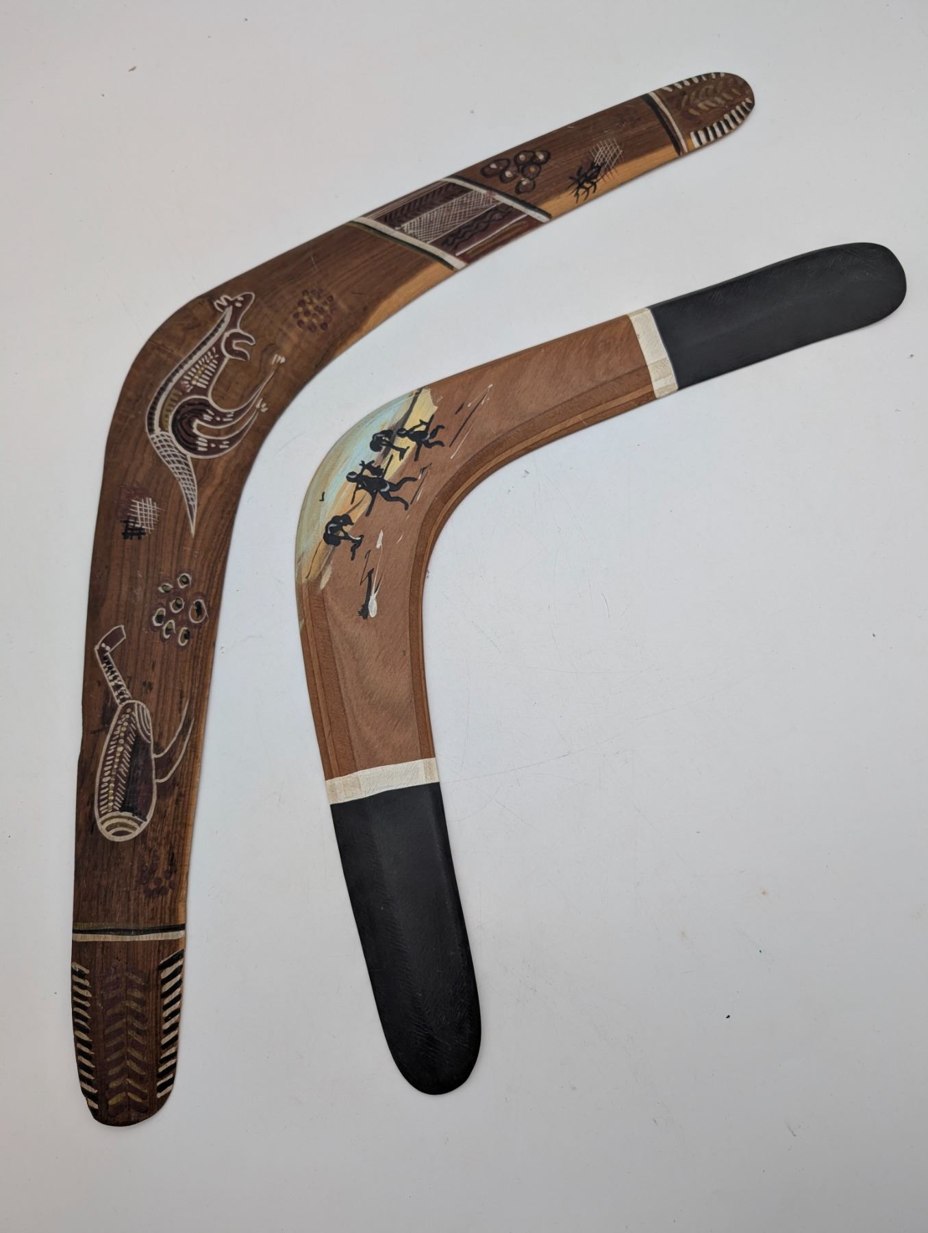 two wooden hand painted Australian boomarangs (ct31)