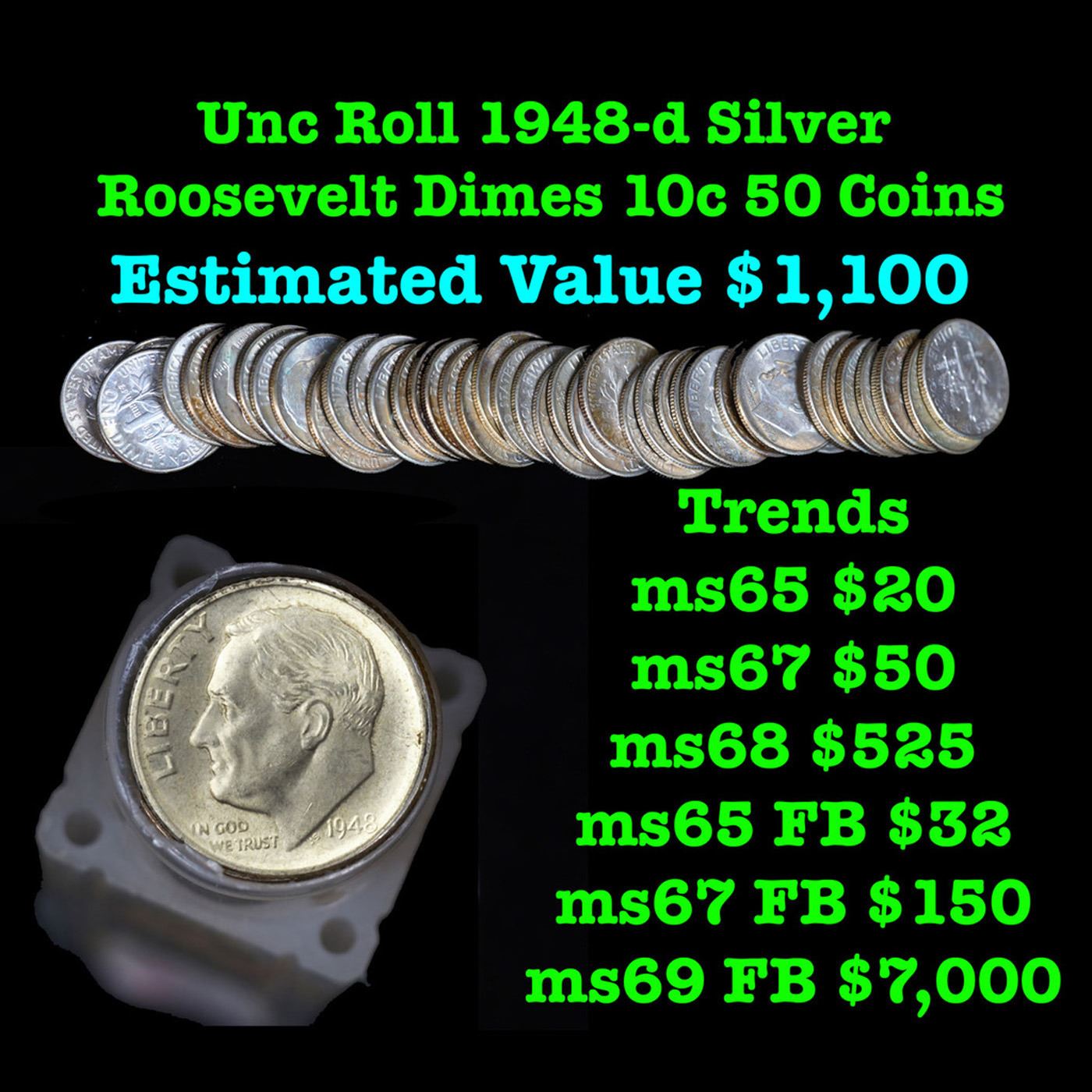 unc Roosevelt 10c roll, 1948-d 50 pcs.