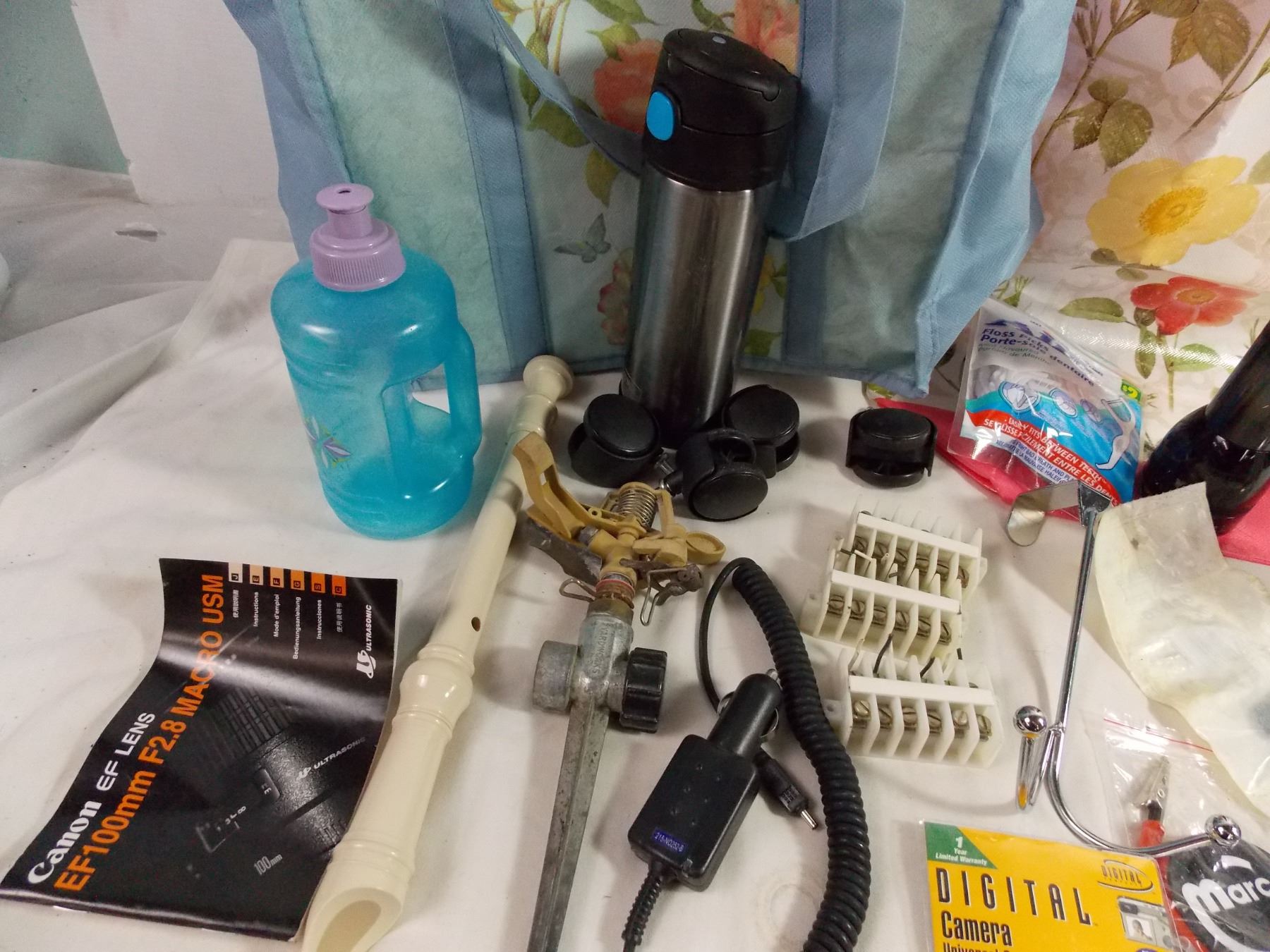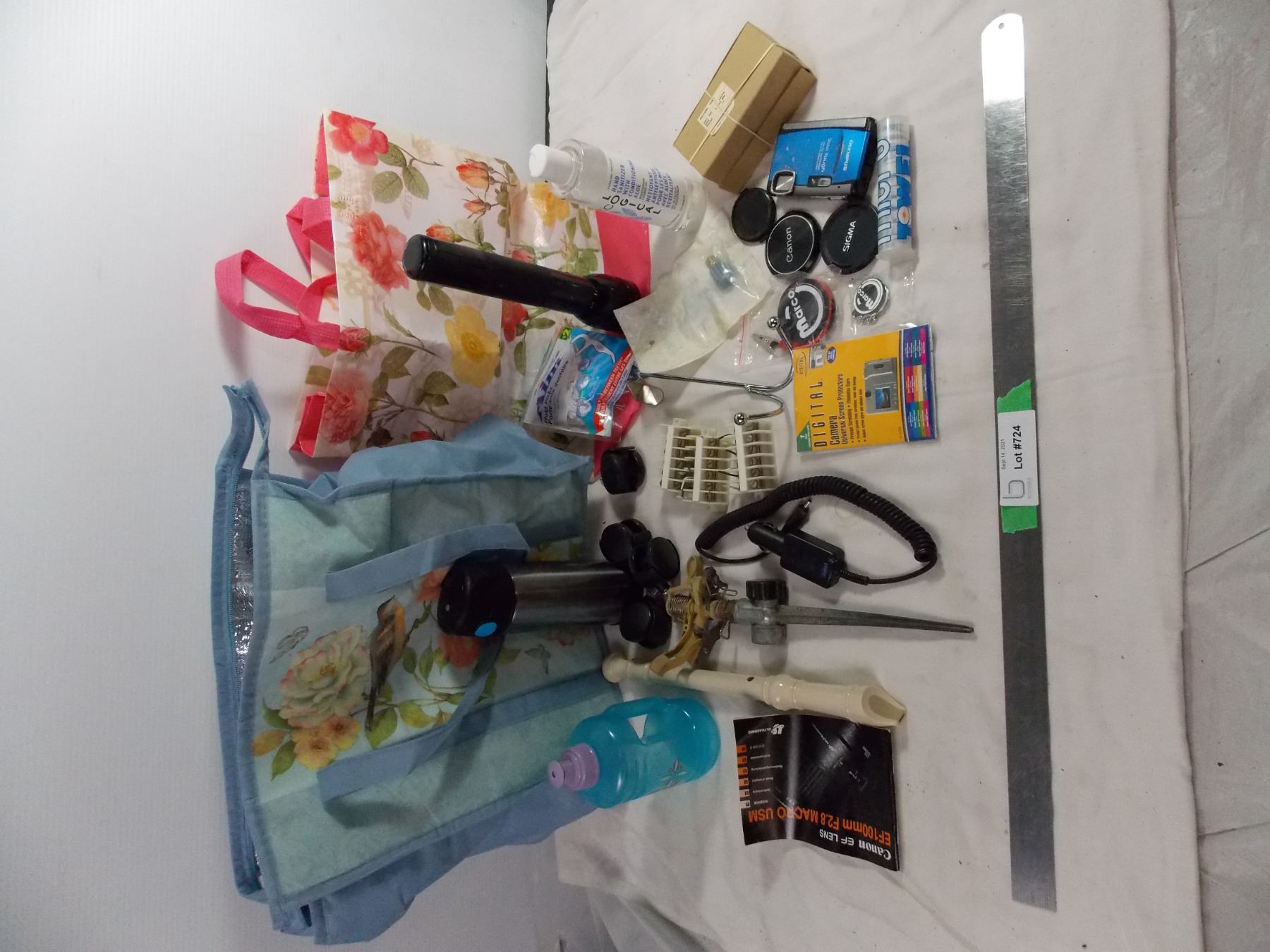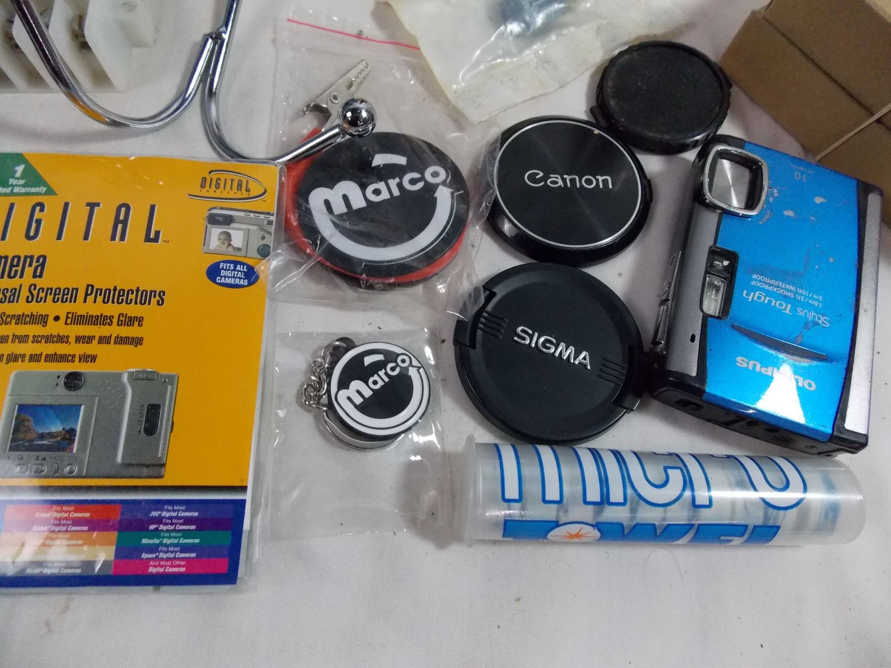 universal camera screen protectors + camera + micro towels + sprinkler + recorder + other misc items